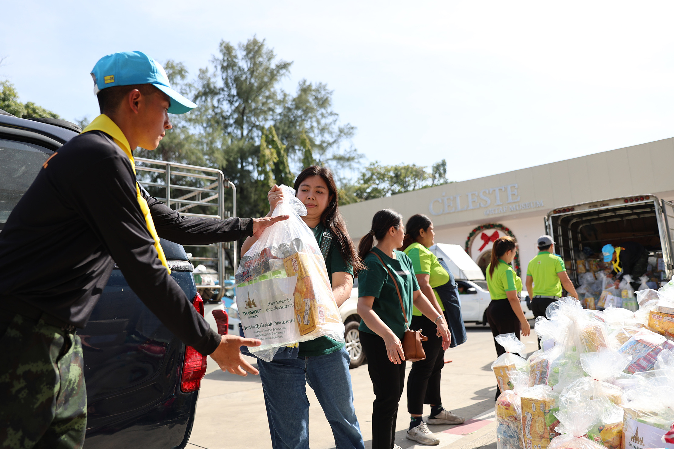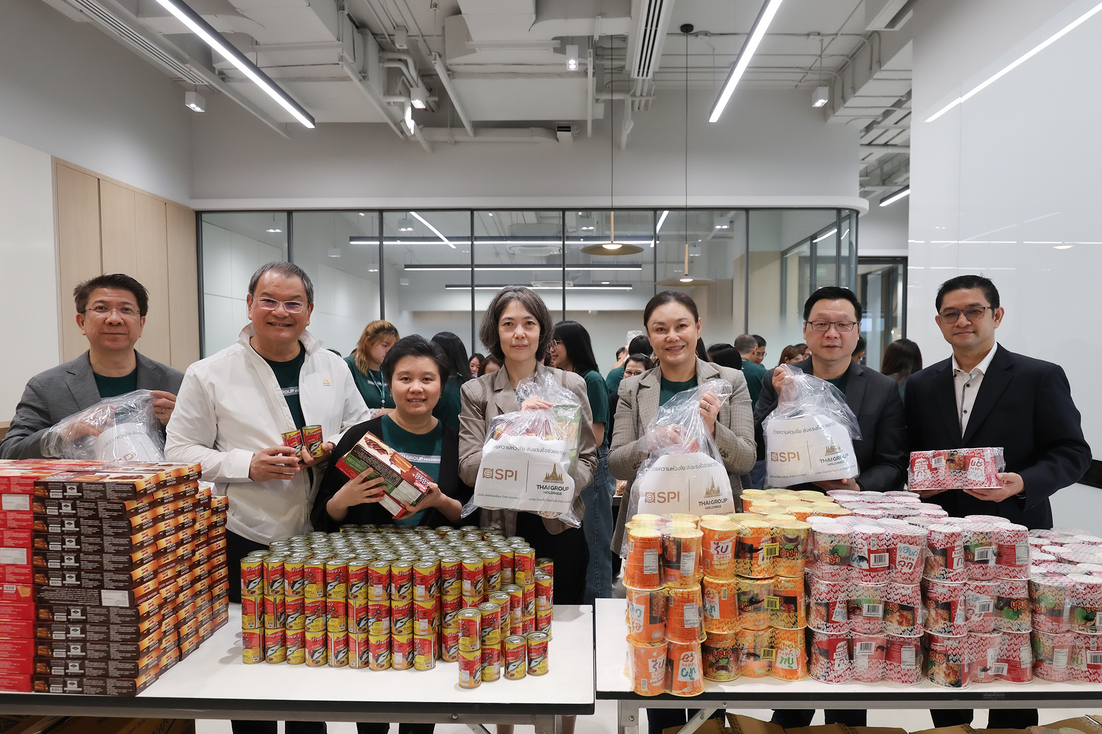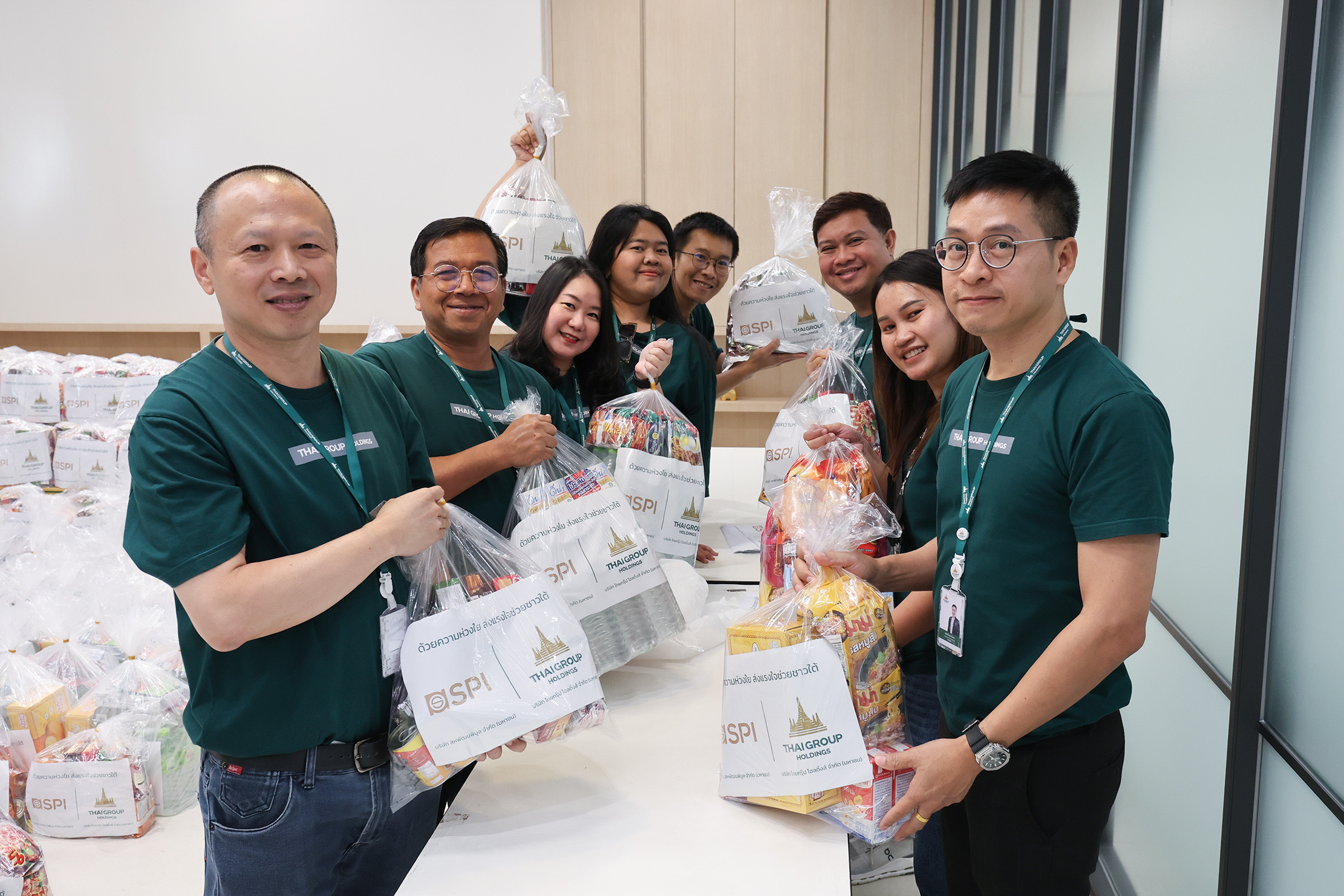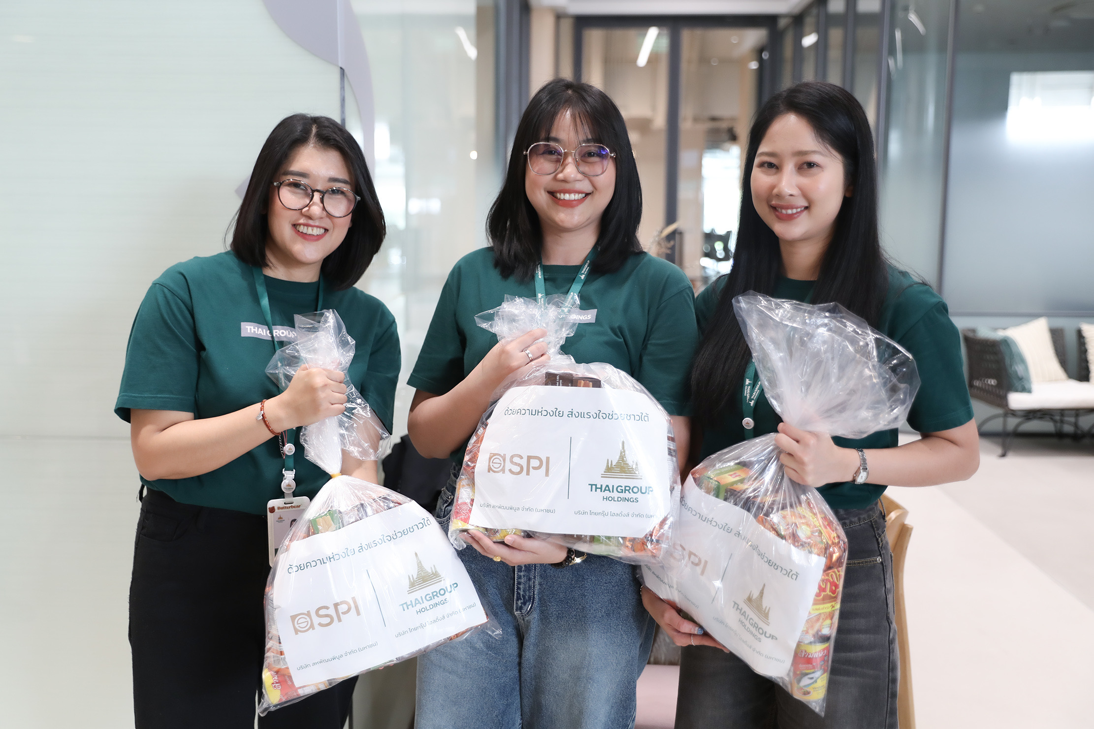 เมื่อวันที่ 28 พฤศจิกายน 2568 คณะผู้บริหาร บริษัท ไทยกรุ๊ป โฮลดิ้งส์ จำกัด (มหาชน) กลุ่มธุรกิจประกันและการเงินในเครือทีซีซี นำโดย นายโชติพัฒน์ และนางอาทินันท์ พีชานนท์ ประธานและรองประธานกรรมการบริหาร พร้อมด้วยนางสาวธนินธร โชควัฒนา ผู้อำนวยการสำนักสื่อสารองค์กรและธรรมาภิบาล บริษัท สหพัฒนาอินเตอร์โฮลดิ้ง จำกัด (มหาชน) และผู้บริหารไทยกรุ๊ป พนักงานจิตอาสา ได้ร่วมแรงร่วมใจกันบรรจุถุงยังชีพเพื่อเตรียมส่งมอบสู่พื้นที่ประสบภัยผ่านศูนย์บรรเทาสาธารณภัยกองทัพอากาศ โดยมี พลโท อดุลย์ บุญธรรมเจริญ รัฐมนตรีช่วยว่าการกระทรวงกลาโหม เป็นผู้รับมอบ เพื่อนำไปกระจายความช่วยเหลือสู่พี่น้องชาวใต้ต่อไป