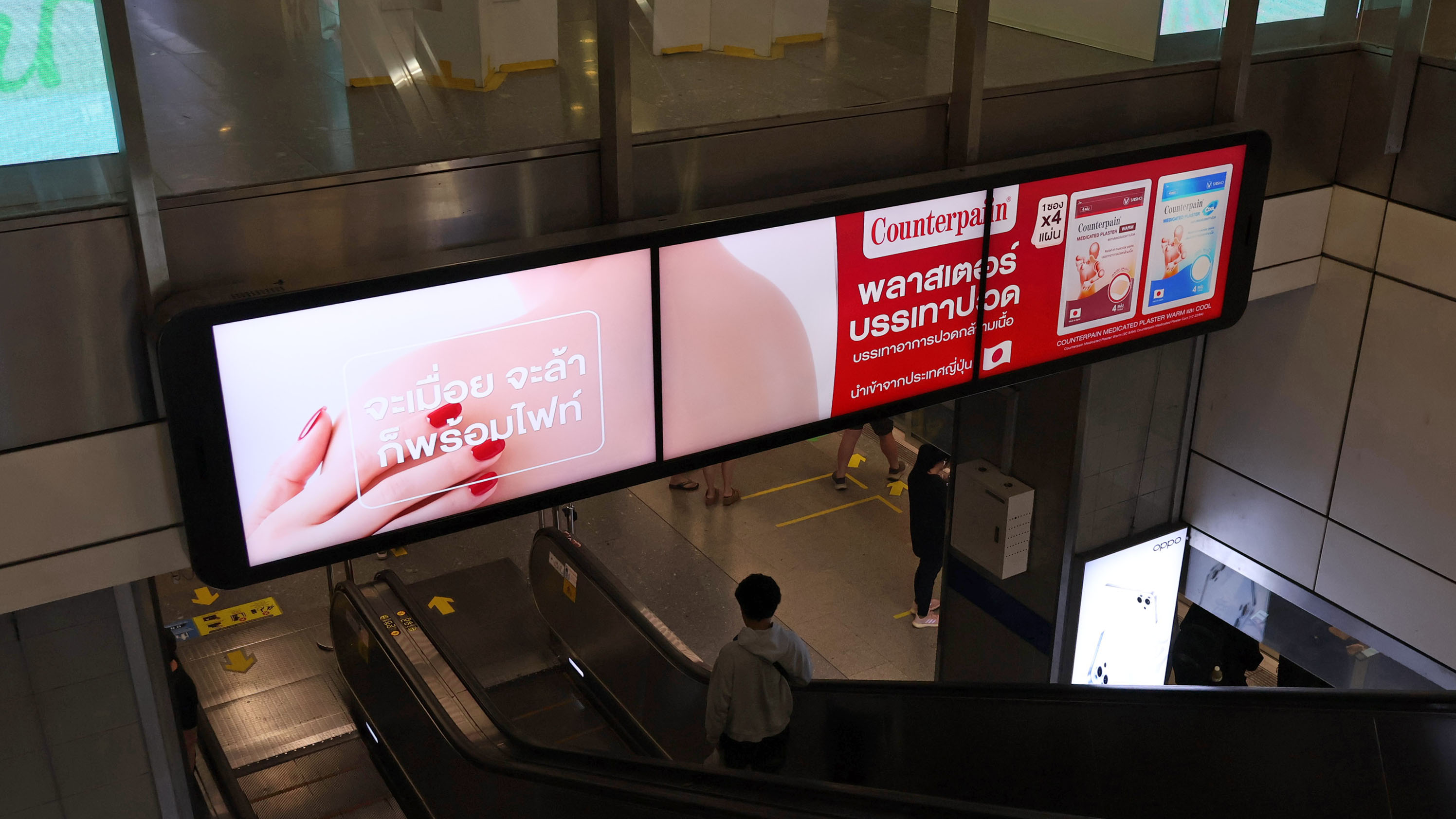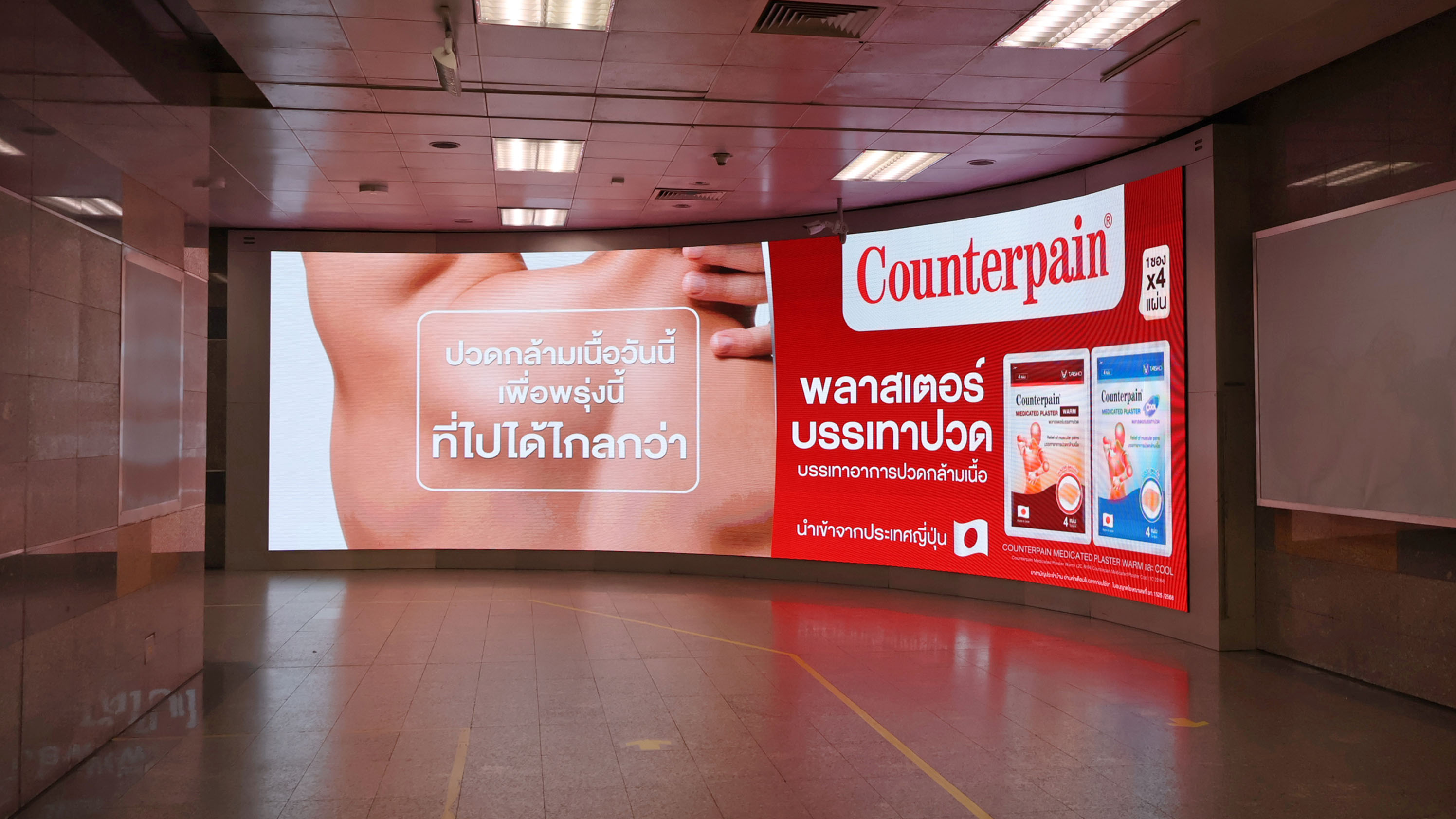 เรื่องราวของแคมเปญ “PROUDTOPAIN” สะท้อนถึงคนเมืองได้อย่างทรงพลัง หนึ่งในไฮไลต์หลักของแคมเปญ คือการขยายเรื่องราวผ่านสื่อดิจิทัลกลางแจ้ง (DOOH) และสื่อในระบบรถไฟฟ้า MRT ทั่วกรุงเทพฯ เพื่อให้เข้าถึงคนทำงานที่ต้องเดินทางทุกวันในชั่วโมงเร่งด่วน แบรนด์ Counterpain จึงปล่อยสื่อประชาสัมพันธ์ชุดพิเศษบน DOOH พร้อมจอในย่านใจกลางกรุงเทพฯ และสถานี MRT รวมไปถึงสื่อประชาสัมพันธ์ต่าง ๆ เพื่อสร้างการปวดกล้ามเนื้อวันนี้ เพื่อพรุ่งนี้ที่แข็งแรงกว่า ผ่านเรื่องราวหลายๆ มุม ที่ Counterpain พร้อมซัพพอร์ตและเป็นอีกหนึ่งกำลังใจให้กับ คนวัยทำงานยุคใหม่—คนที่ไม่เคยหยุดวิ่งไล่ความฝันแม้เมื่อยล้าเพียงใดก็ตาม เพื่อให้เข้าถึงกลุ่มคนที่ใช้ชีวิตเร่งรีบและต้องเผชิญกับความปวดทุกวัน โดยใช้ Quote ต่าง ๆ ที่ทำให้คนเห็นแล้วรู้สึกตรงใจ ผ่านการถ่ายทอดคำต่าง ๆ เช่น “อย่าหยุดถ้ายังไม่สุดทาง”, “ปวดกล้ามเนื้อวันนี้ เพื่อพรุ่งนี้ที่ไปได้ไกลกว่า”, “จะเมื่อยจะล้าก็พร้อมไฟท์”