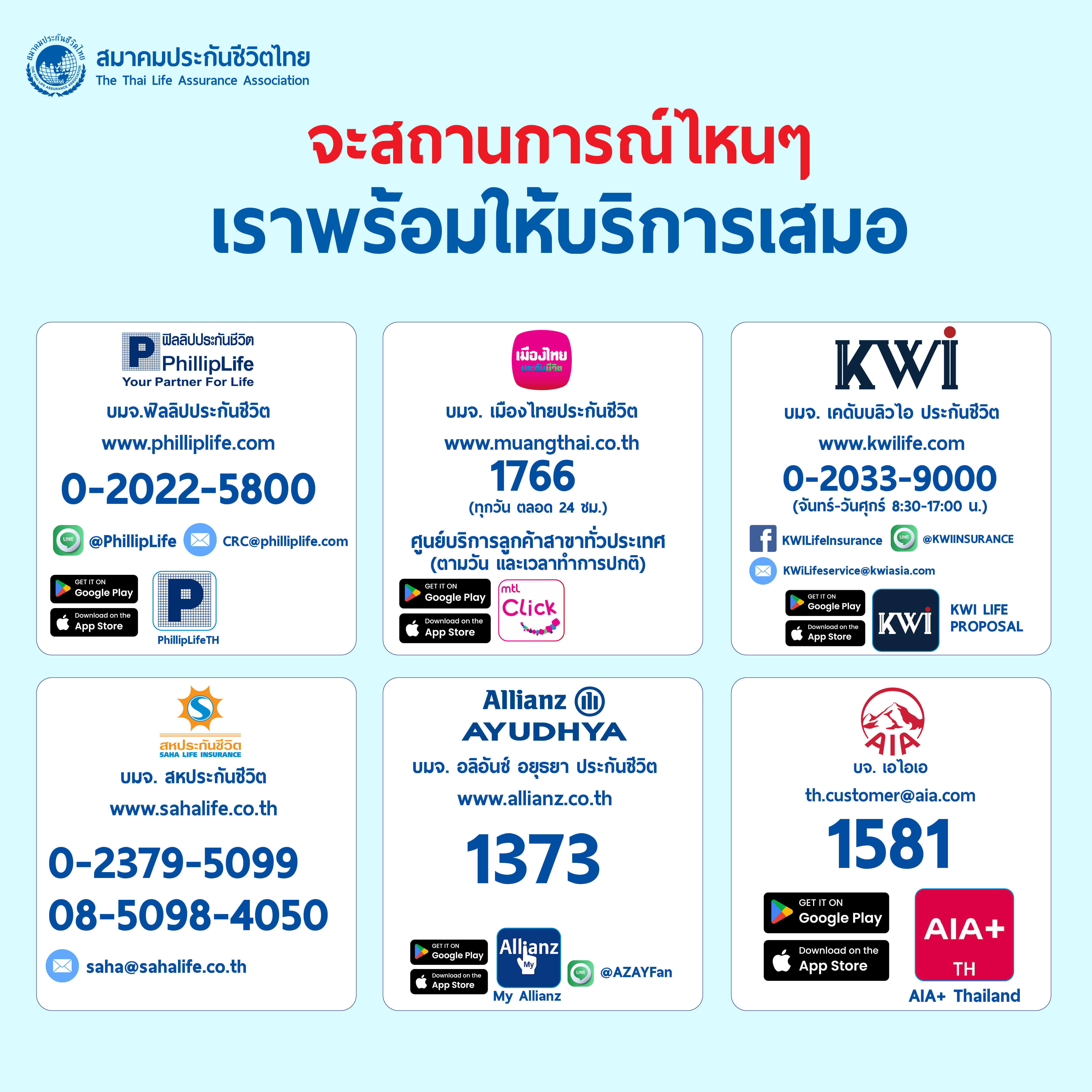 หากต้องการสอบถามข้อมูล หรือขอคำแนะนำเกี่ยวกับกรมธรรม์หรือความคุ้มครอง สามารถติดต่อสอบถามได้ที่สมาคมประกันชีวิตไทย ผ่านช่องทาง Facebook : สมาคมประกันชีวิตไทย และทางโทรศัพท์ 02-679-8080 หรืออีเมล tlaa@tlaa.org