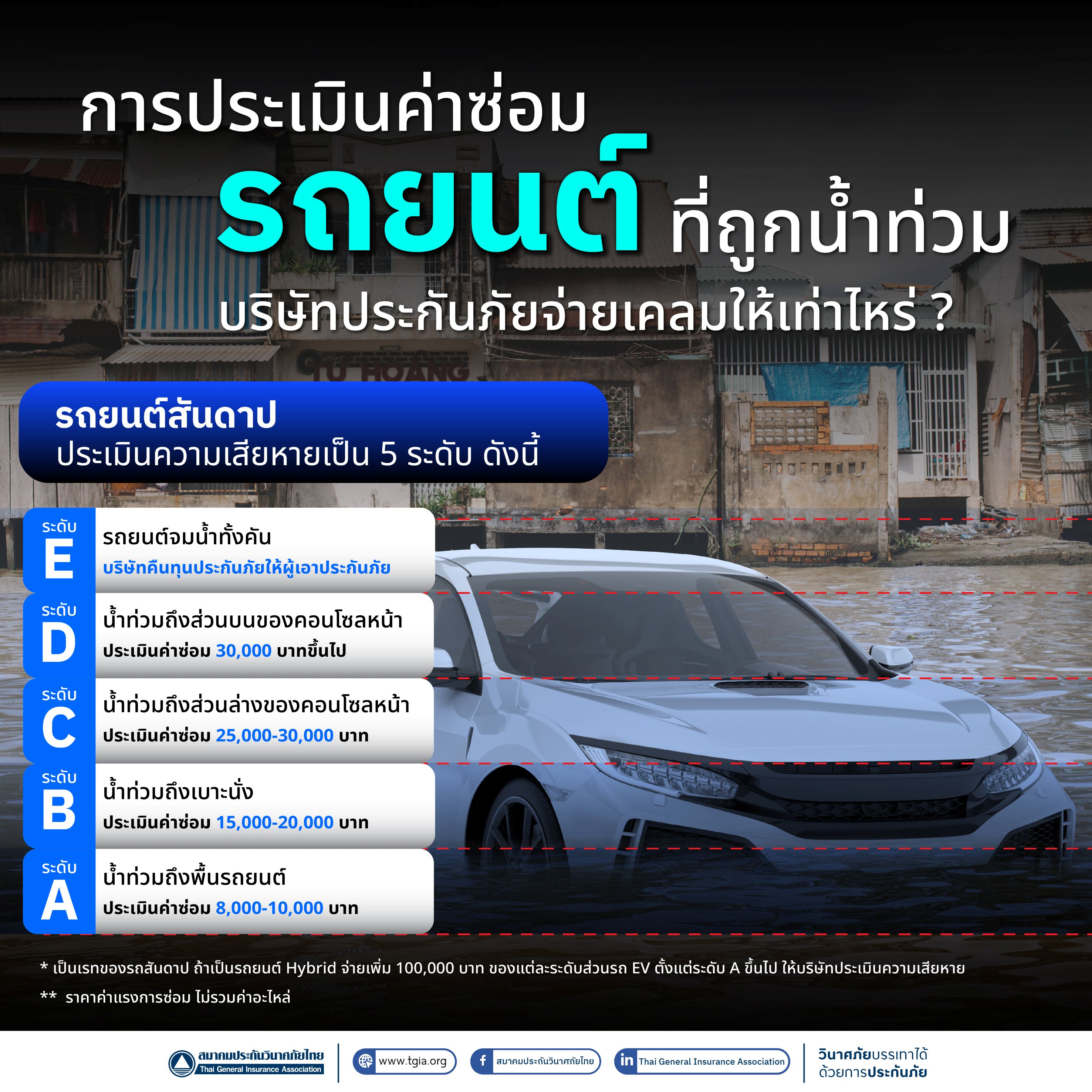 ระดับ A น้ำท่วมถึงพื้นรถยนต์ ประเมินค่าซ่อม 8,000-10,000 บาท