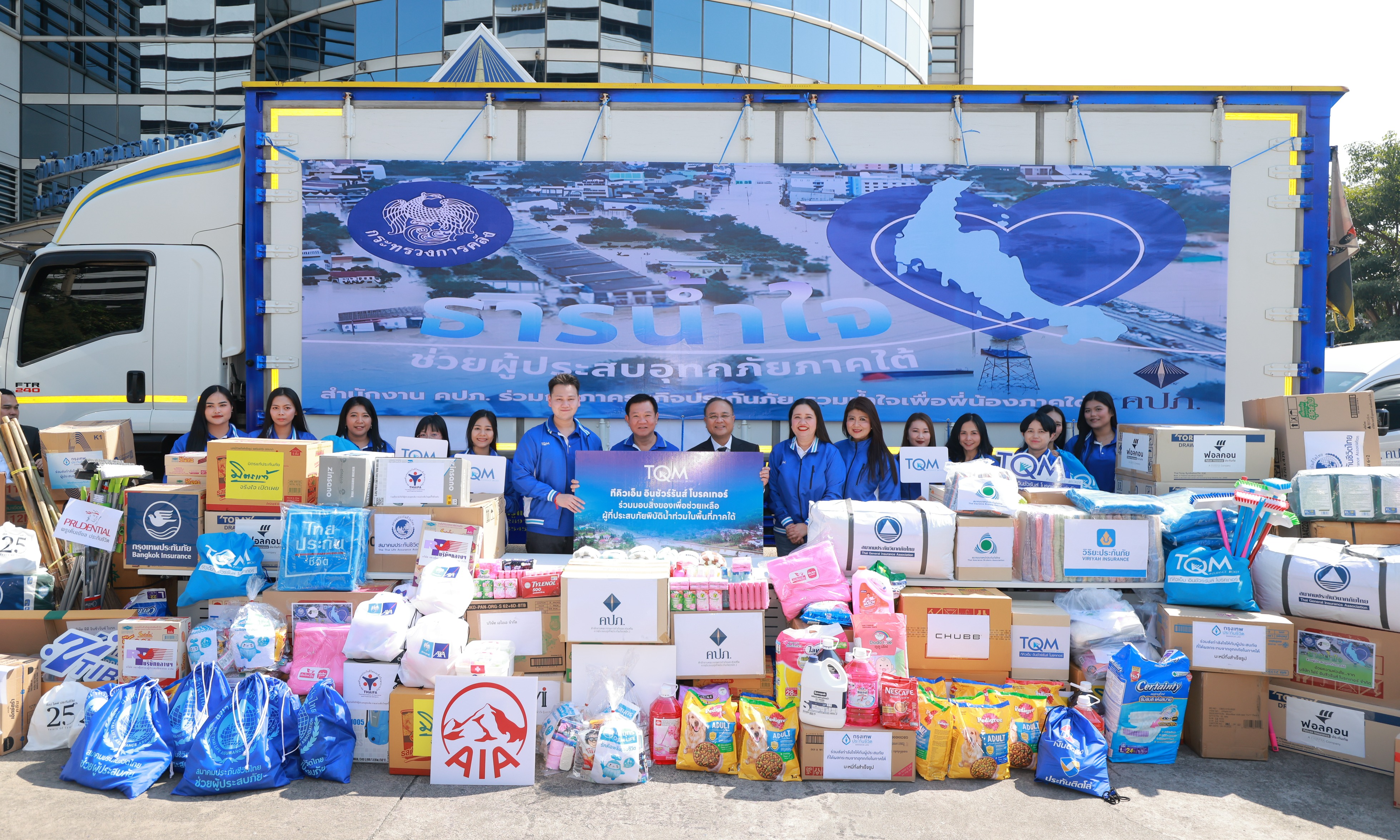 สำนักงานคณะกรรมการกำกับและส่งเสริมการประกอบธุรกิจประกันภัย (สำนักงาน คปภ.) ร่วมกับเครือข่ายภาคธุรกิจประกันภัยรวม 29 หน่วยงาน ซึ่ง บริษัท ทีคิวเอ็ม อินชัวร์รันส์ โบรคเกอร์ จำกัด (TQM) โดย ดร.อัญชลิน พรรณนิภา ประธานบริษัท ฯ เป็นหนึ่งในหน่วยงานที่ร่วมสนับสนุนการบริจาคในครั้งนี้ได้ร่วมกันส่งมอบถุงยังชีพและอุปกรณ์ทำความสะอาด เพื่อช่วยเหลือประชาชนที่ได้รับผลกระทบจากสถานการณ์อุทกภัย ในพื้นที่ภาคใต้ ณ บริเวณ ลานอเนกประสงค์ สำนักงาน คปภ. ถนนรัชดาภิเษก