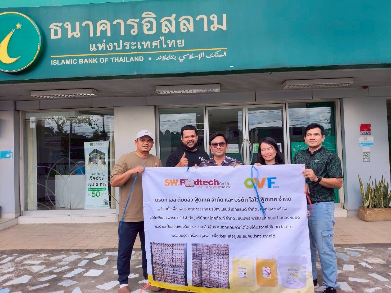 ทั้งนี้ น.สพ. รัชชานนท์ เรืองใจ และ สพ.ญ.รัชนีกร คุปติเวช ผู้บริหาร บริษัท แม่ทาทองฟาร์ม จำกัด ผู้จำหน่ายไข่ไก่สด ภายใต้ Brand “Happy Egg” คู่ค้าทางธุรกิจกิจของธนาคารอีกรายที่ได้ให้การสนับสนุนอาหารสด ผ่านธนาคารอิสลามแห่งประเทศไทย สาขาในพื้นที่ภาคใต้ อาทิ สาขาแม่ขรี จังหวัดพัทลุง สาขาละงู และสาขาสตูล จังหวัดสตูล ประกอบด้วย รายการไข่สด 21,000 ฟอง จำนวน 700 ถาด และไข่รวมเหลวพาสเจอร์ไรซ์ 250 กิโลกรัม จำนวน 50 แกลลอน ลงพื้นที่แจกจ่ายให้ความช่วยเหลือ นำโดยทีมจิตอาสาอำเภอคลองเฉลิม จังหวัดพัทลุง มอบไข่สดยกแผง และไข่รวมเหลวพาสเจอร์ไรซ์ แก่พี่น้องผู้ประสบอุทกภัยในอำเภอปากปากพะยูน เกาะนางคำใต้ เกาะนางคำเหนือ บ้านแหลมไก่ผู้ บ้านช่องฟืน และสถาบันฮาฟิสอัลกุรอานมัรกัสพัทลุง (บ้านเกาะนางคำ) และในพื้นที่อำเภอละงู และอำเภอเมือง จังหวัดสตูล ทางทีมสาขาในพื้นที่ส่งมอบไข่สดยกแผง และไข่รวมเหลวพาสเจอร์ไรซ์ให้กับมัสยิด 5 แห่ง สถานสงเคราะห์เด็กกำพร้าบ้านเอมิเรสต์ โรงเรียนนิด้าศึกษาศาสตร์ โรงเรียนมุสลิมสตูลวิทยา และโรงเรียนในพื้นที่อีก 4 แห่ง ซึ่งปัจจุบันลูกค้าธนาคารจาก บริษัท เอส.ดับบลิว.ฟู้ดเทค จำกัด และบริษัท โอโว่ ฟู้ดเทค จำกัด และบริษัท แม่ทาทองฟาร์ม จำกัด ได้ส่งมอบไข่ไก่สดไปแล้ว จำนวน 36,000 ฟอง รวม 1,200 แผง ไข่รวมเหลวพาสเจอร์ไรซ์ 500 กิโลกรัม รวม 100 แกลลอน และไข่ต้มปอกเปลือก 5,000 ฟอง จำนวน 50 ถัง นอกจากนี้ยังมีผู้แทนมูลนิธิยามเฝ้าแผ่นดิน ร่วมลงพื้นที่ส่งมอบความช่วยเหลือร่วมกัน ในโอกาสเดียวกันนี้ อีกด้วย