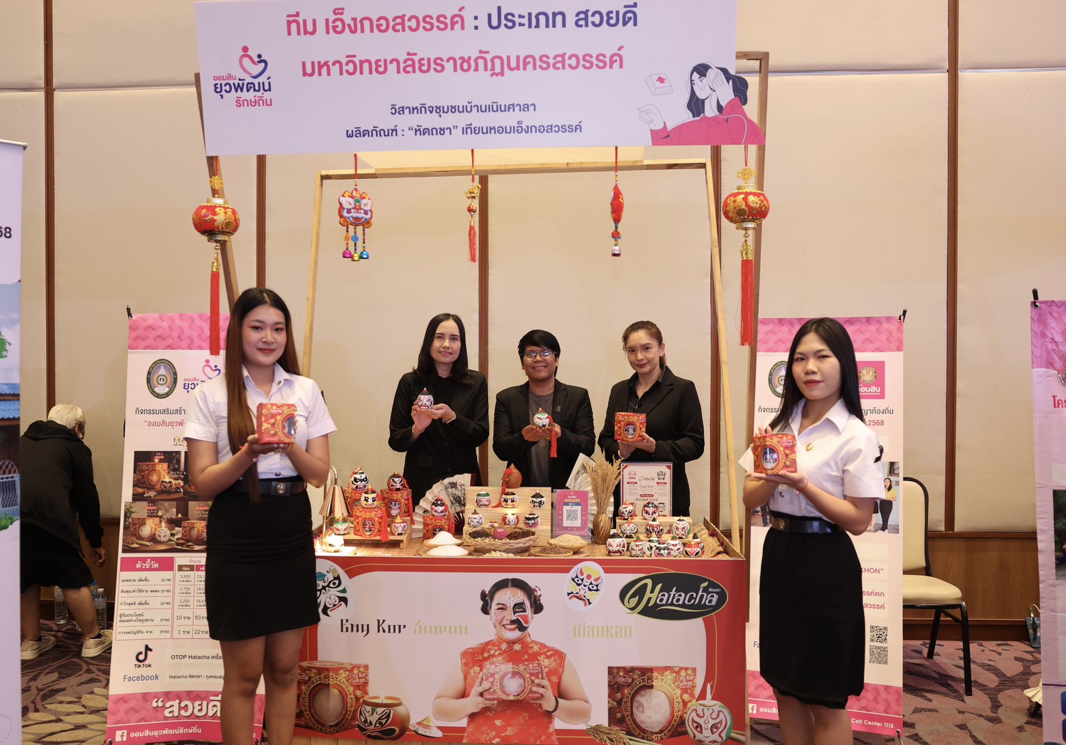 ประเภทสวยดี - ทีมเอ็งกอสวรรค์ มหาวิทยาลัยราชภัฏนครสวรรค์ พัฒนาวิสาหกิจชุมชนบ้านเนินศาลา อ.เมืองนครสวรรค์ จ.นครสวรรค์ ด้วยผลิตภัณฑ์ “หัตถชา” เทียนหอมที่ผสานศิลปะและวัฒนธรรม อัตลักษณ์ของนครสวรรค์