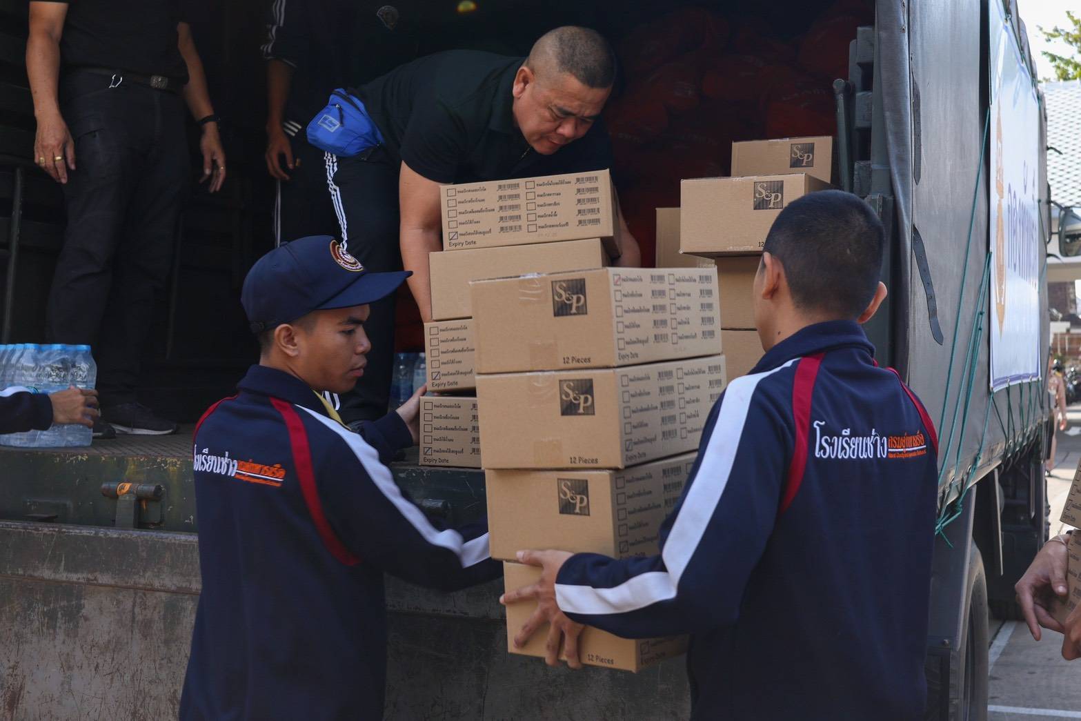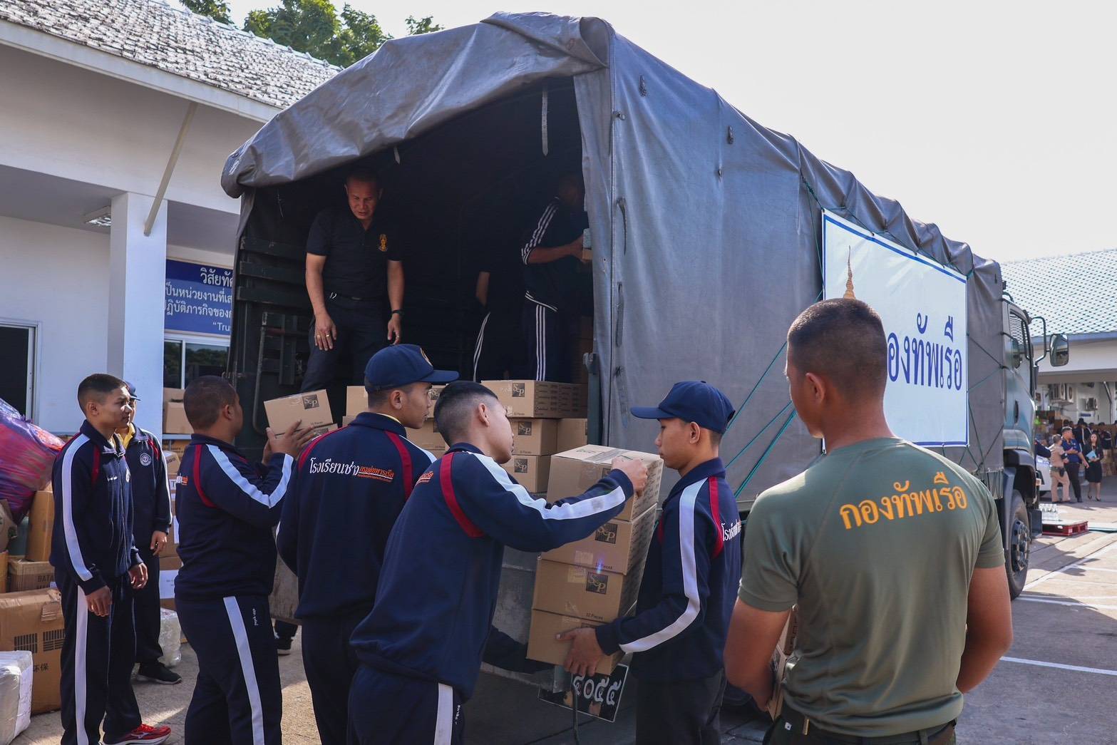 คุณมณีสุดา ศิลาอ่อน ประธานเจ้าหน้าที่สำนักพัฒนาความยั่งยืนและสื่อสารองค์กร บริษัท เอส แอนด์ พี ซินดิเคท จำกัด (มหาชน) มอบน้ำดื่ม จำนวน 18,000 ขวด และผลิตภัณฑ์ขนมปังเดลิโอ S&P จำนวน 5,004 ชิ้น มูลค่ารวม 400,104 บาท เพื่อช่วยบรรเทาความเดือดร้อนของประชาชนผู้ประสบอุทกภัยพื้นที่จังหวัดสงขลา และจังหวัดใกล้เคียง ภายใต้โครงการ ”S&P รวมใจช่วยภัยน้ำท่วม ปี 2568“ โดยมี พลเรือเอก ไพโรจน์ เฟื่องจันทร์ ผู้บัญชาการทหารเรือ (ที่ 4 จากขวา) ให้เกียรติรับมอบ ณ กองบัญชาการทหารเรือ ระหว่างวันที่ 27-28 พฤศจิกายน 2568