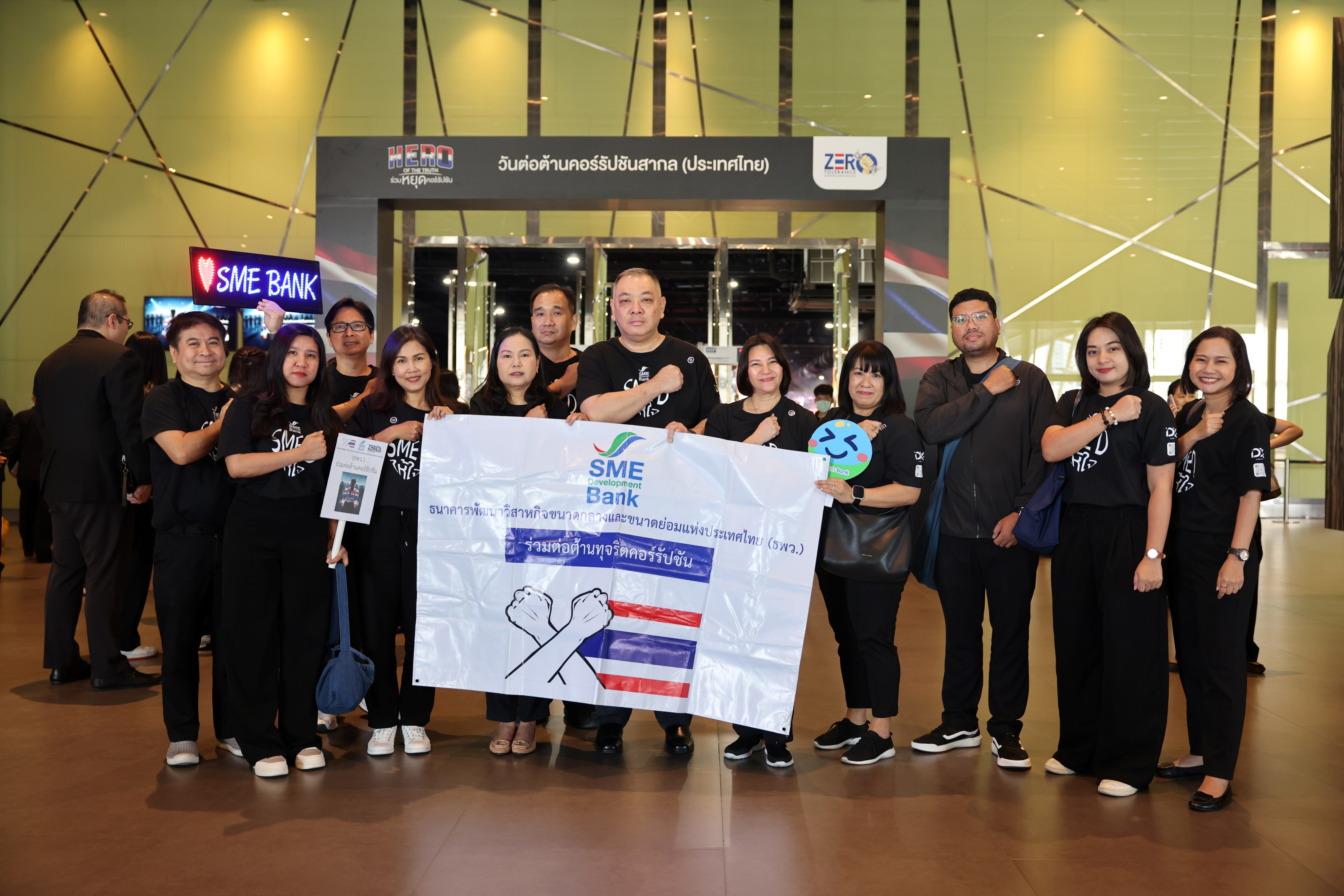 ธนาคารพัฒนาวิสาหกิจขนาดกลางและขนาดย่อมแห่งประเทศไทย (ธพว.) หรือ SME D Bank โดยนายเชิดชาย อวนมินทร์ ผู้ช่วยกรรมการผู้จัดการ พร้อมคณะผู้บริหารและเจ้าหน้าที่ธนาคาร เข้าร่วมกิจกรรมวันต่อต้านคอร์รัปชันสากล (ประเทศไทย) ประจำปี 2568 ภายใต้แนวคิด “HERO OF THE TRUTH : ร่วมหยุดคอร์รัปชัน” ประกาศจุดยืน “ไทยไม่ทนต่อการโกงทุกรูปแบบ” จัดโดย สำนักงานคณะกรรมการป้องกันและปราบปรามการทุจริตแห่งชาติ (ป.ป.ช.) เพื่อร่วมแสดงพลังและประกาศเจตจำนงการบริหารงานอย่างโปร่งใส ป้องกันแก้ไขและปราบปรามการทุจริตทุกรูปแบบ และแสดงเจตจำนงอันแน่วแน่ในการป้องกันและต่อต้านการทุจริตในองค์กรให้เกิดเป็นรูปธรรม พร้อมปฏิบัติหน้าที่และบริหารองค์กรอย่างซื่อสัตย์ สุจริต โปร่งใส ตรวจสอบได้ เป็นไปตามหลักธรรมาภิบาล โดยมี นายอนุทิน ชาญวีรกูล นายกรัฐมนตรี และรัฐมนตรีว่าการกระทรวงมหาดไทย เป็นประธานในพิธีประกาศเจตจำนงในการต่อต้านทุจริต โดยมีผู้บริหารและเจ้าหน้าที่ภาครัฐ ภาคเอกชน และภาคประชาสังคม เข้าร่วม ณ อิมแพ็ค เมืองทองธานี จังหวัดนนทบุรี เมื่อวันที่ 9 ธันวาคม 2568