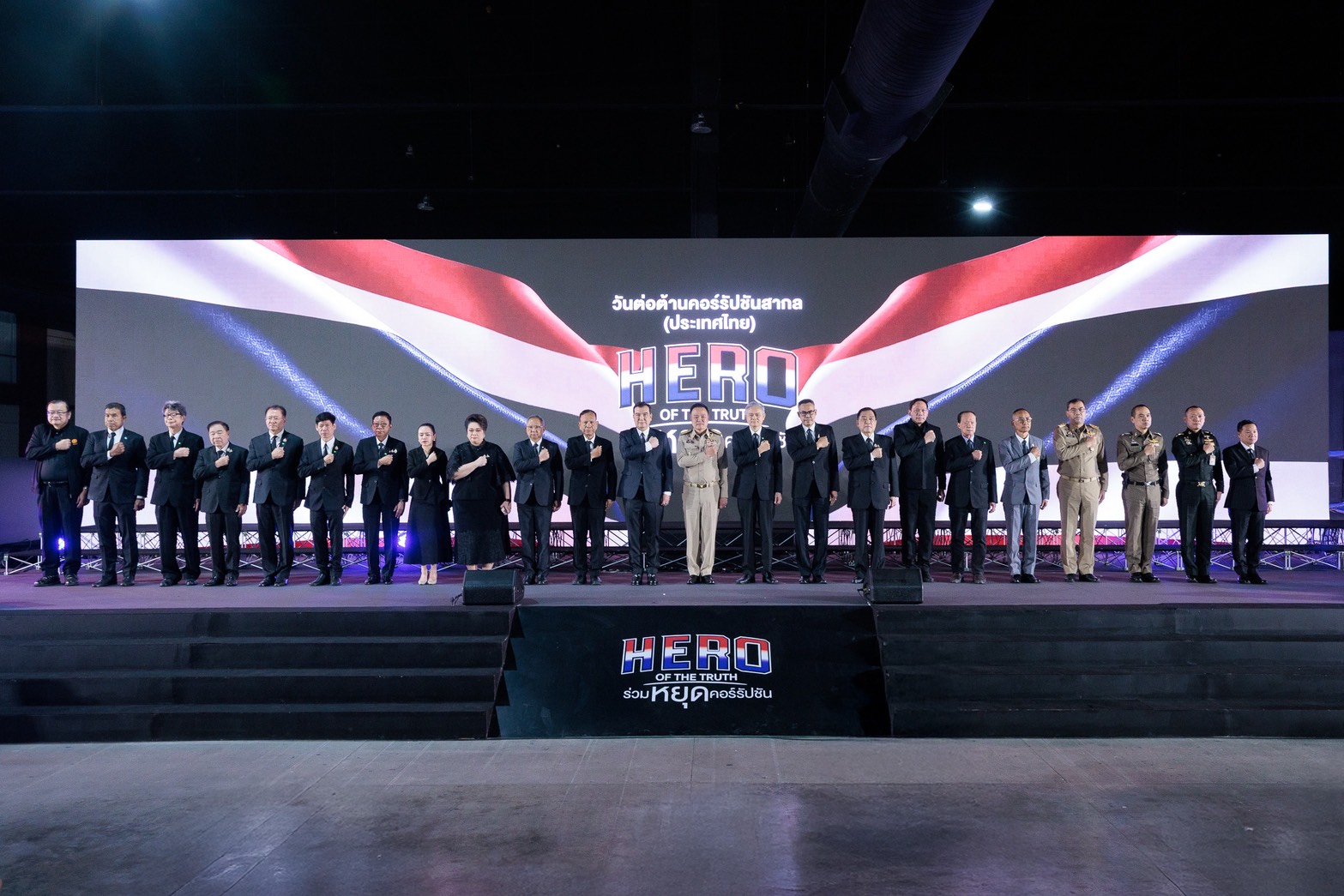 นายอนุทิน ชาญวีรกูล นายกรัฐมนตรี เป็นประธานการจัดงานวันต่อต้านคอร์รัปชันสากล (ประเทศไทย) ประจำปี 2568 ภายใต้แนวคิด “HERO OF THE TRUTH ร่วมหยุดคอร์รัปชัน” โดยรัฐบาล ร่วมกับสำนักงานคณะกรรมการป้องกันและปราบปรามการทุจริตแห่งชาติ (สำนักงาน ป.ป.ช.) สำนักงานป้องกันและปราบปรามการทุจริตในภาครัฐ (สำนักงาน ป.ป.ท.) องค์กรต่อต้านคอร์รัปชัน (ประเทศไทย) และภาคีเครือข่ายทุกภาคส่วน รวมถึงธนาคารเพื่อการส่งออกและนำเข้าแห่งประเทศไทย (EXIM BANK) นำโดยนายชลัช รัตนบุญนิธิ กรรมการผู้จัดการ EXIM BANK พร้อมผู้บริหารและพนักงานธนาคาร ร่วมประกาศเจตนารมณ์ในการต่อต้านการทุจริต และแสดงสัญลักษณ์ต่อต้านการทุจริต ณ อิมแพ็ค เมืองทองธานี เมื่อวันที่ 9 ธันวาคม 2568