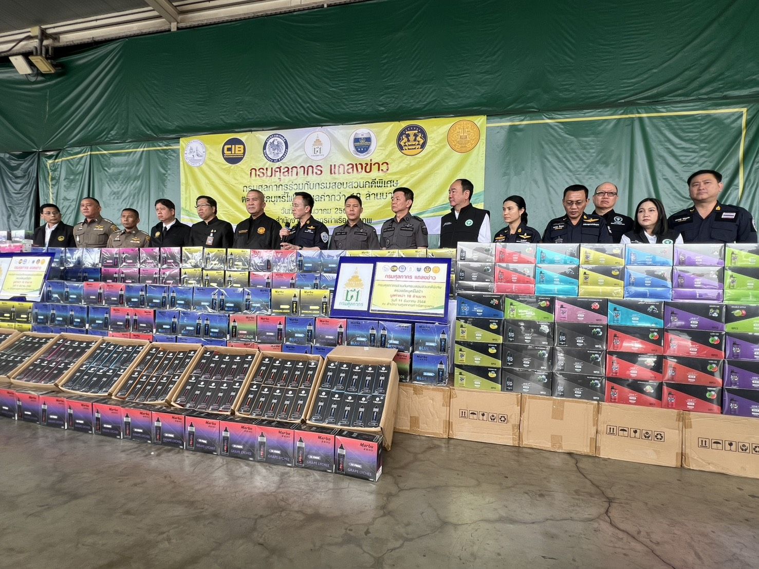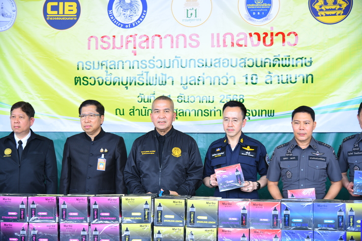 อธิบดีกรมศุลกากร กล่าวต่อว่า จะเห็นว่า พฤติการณ์การลักลอบนำเข้าบุหรี่ไฟฟ้าจะเปลี่ยนเป็นการซุกซ่อนปะปนอยู่กับสินค้าอื่น ๆ ภายในตู้คอนเทนเนอร์ เพื่อหลบซ่อนการตรวจค้นของเจ้าหน้าที่ ทั้งนี้ จากการบูรณาการร่วมกันระหว่างกรมศุลกากรและหน่วยงานอื่น ๆ ที่เกี่ยวข้องทำให้สามารถป้องกันและปราบปรามสินค้าผิดกฎหมายได้อย่างมีประสิทธิภาพและสามารถปกป้องสังคมได้อย่างปลอดภัย สำหรับสถิติการจับกุมบุหรี่ไฟฟ้าและอุปกรณ์ในปีงบประมาณ 2569 (ตั้งแต่เดือน 1 ตุลาคม – 11 ธันวาคม 2568) ตรวจยึดได้ 123,870 ชิ้น/อัน/กล่อง/เซต มูลค่ารวมทั้งสิ้น 25,170,659 บาท