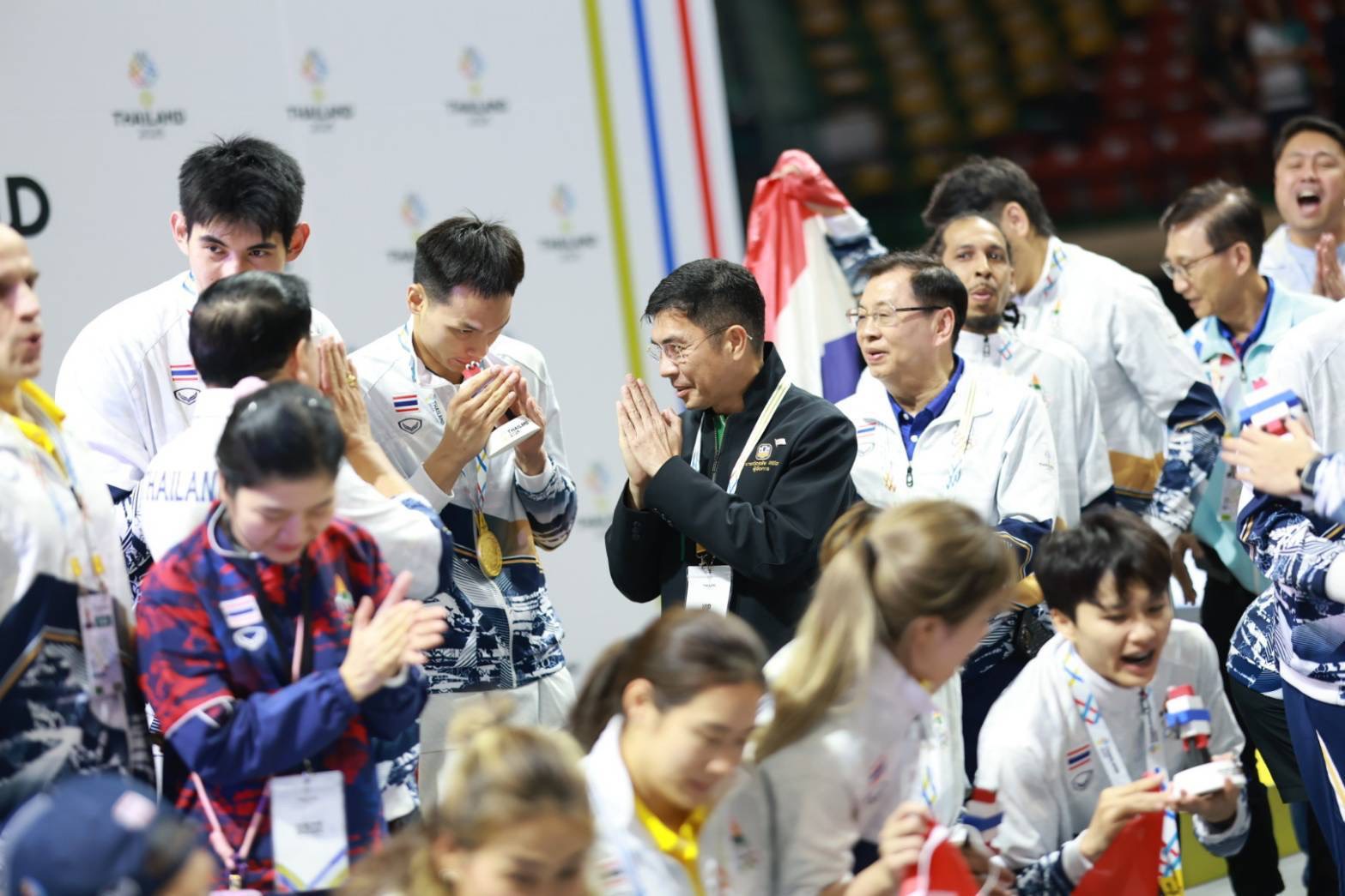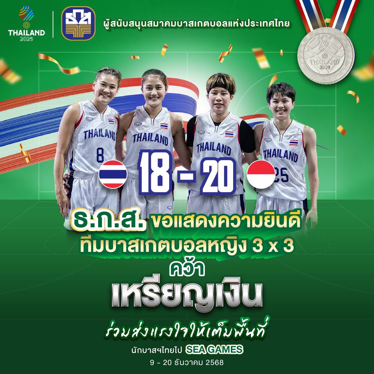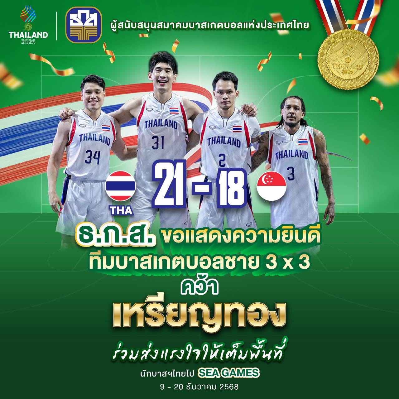 นายฉัตรชัย ศิริไล ผู้จัดการธนาคารเพื่อการเกษตรและสหกรณ์การเกษตร (ธ.ก.ส.) ร่วมชมการแข่งขันและส่งแรงใจเชียร์นักกีฬาบาสเกตบอลไทย 3x3 ประเภททีมชาย และประเภททีมหญิง ในศึกซีเกมส์ ครั้งที่ 33 ในฐานะผู้สนับสนุนสมาคมกีฬาบาสเกตบอลแห่งประเทศไทยอย่างเป็นทางการ ภายใต้ “โครงการ 1 สมาคมกีฬา 1 รัฐวิสาหกิจพลัส” โดยทีมบาสเกตบอลชายคว้าเหรียญทอง และทีมบาสเกตบอลหญิงคว้าเหรียญเงินให้แก่ประเทศไทย สร้างความภาคภูมิใจให้แก่ประชาชนชาวไทยทั้งประเทศ นอกจากนี้ ผู้จัดการ ธ.ก.ส. ได้รับเกียรติมอบเหรียญรางวัลให้แก่นักกีฬาบาสเกตบอล 3x3 ประเภททีมชายอีกด้วย ณ สนามกีฬานิมิบุตร สนามกีฬาแห่งชาติ กรุงเทพฯ เมื่อวันที่ 11 ธันวาคม 2568