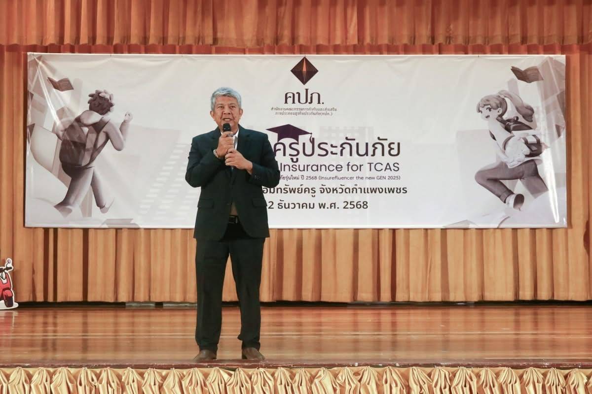 สำนักงานคณะกรรมการกำกับและส่งเสริมการประกอบธุรกิจประกันภัย (สำนักงาน คปภ.) เดินหน้าต่อยอดความสำเร็จของโครงการ Insurefluencer The New Gen 2025 หลังประกาศผลระดับประเทศเรียบร้อยแล้ว จัดกิจกรรม "ครูประกันภัย" เพื่อมอบเป็นรางวัลพิเศษ ให้แก่สถานศึกษา 3 แห่ง ที่คว้ารางวัลชนะเลิศระดับประเทศ เพื่อพัฒนาศักยภาพเยาวชนไทย ทั้งด้านวิชาการ ความรู้ประกันภัย และทักษะอาชีพอย่างรอบด้าน โดยมีเยาวชนเข้าร่วมกิจกรรมทั้ง 3 แห่ง รวมกว่า 1,200 คน