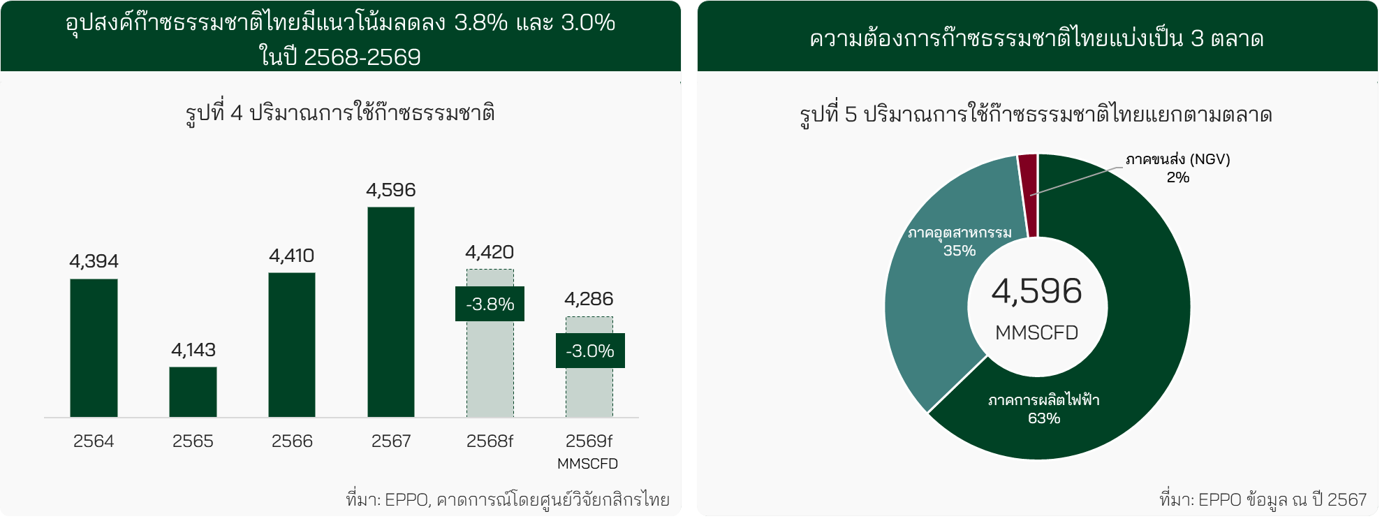 อุปสงค์ก๊าซธรรมชาติไทยมีแนวโน้มลดลง 3.8% และ 3.0% ในปี 2568 และ 2569 (รูปที่ 4)