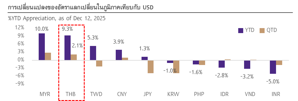 รูปที่ 2 : เงินบาทแข็งค่านำเกือบทุกสกุลเงินในภูมิภาค
