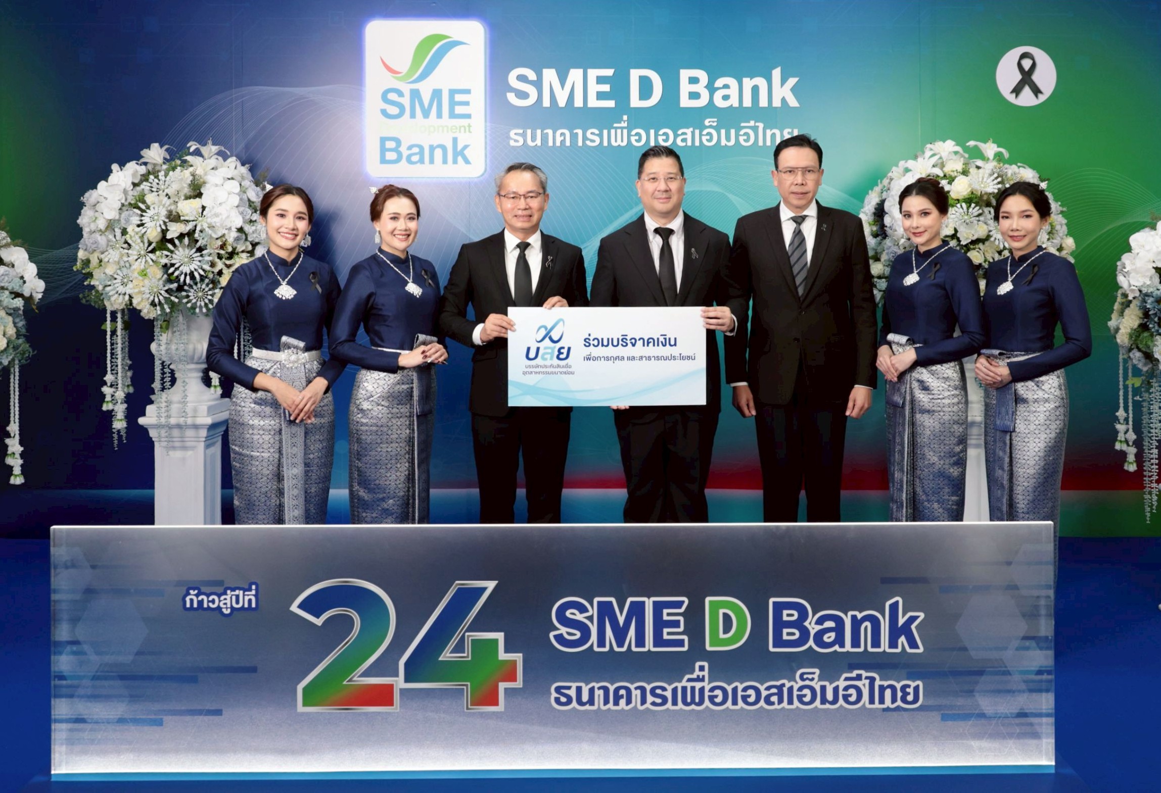 นายสิทธิกร ดิเรกสุนทร กรรมการและผู้จัดการทั่วไป บรรษัทประกันสินเชื่ออุตสาหกรรมขนาดย่อม (บสย.) และ นายกิตติพงษ์ บุรณศิริ รองผู้จัดการทั่วไป สายงานกลยุทธ์และผลิตภัณฑ์ ร่วมแสดงความยินดี เนื่องในโอกาสครบรอบวันสถาปนา ธนาคารพัฒนาวิสาหกิจขนาดกลางและขนาดย่อมแห่งประเทศไทย (ธพว.) หรือ SME D Bank ก้าวสู่ปีที่ 24 ในโอกาสนี้ บสย. ได้ร่วมบริจาคเงินสมทบทุนกองทุนอาคารและเครื่องมือแพทย์ มอบแก่มูลนิธิสนับสนุนสถาบันประสาทวิทยา สถาบันเฉพาะทางด้านโรคระบบประสาท สังกัดกรมการแพทย์ กระทรวงสาธารณสุข โดยมีนายพิชิต มิทราวงศ์ กรรมการผู้จัดการ SME D Bank ให้การต้อนรับ เมื่อวันที่ 19 ธันวาคม 2568 ณ อาคาร SME Bank Tower