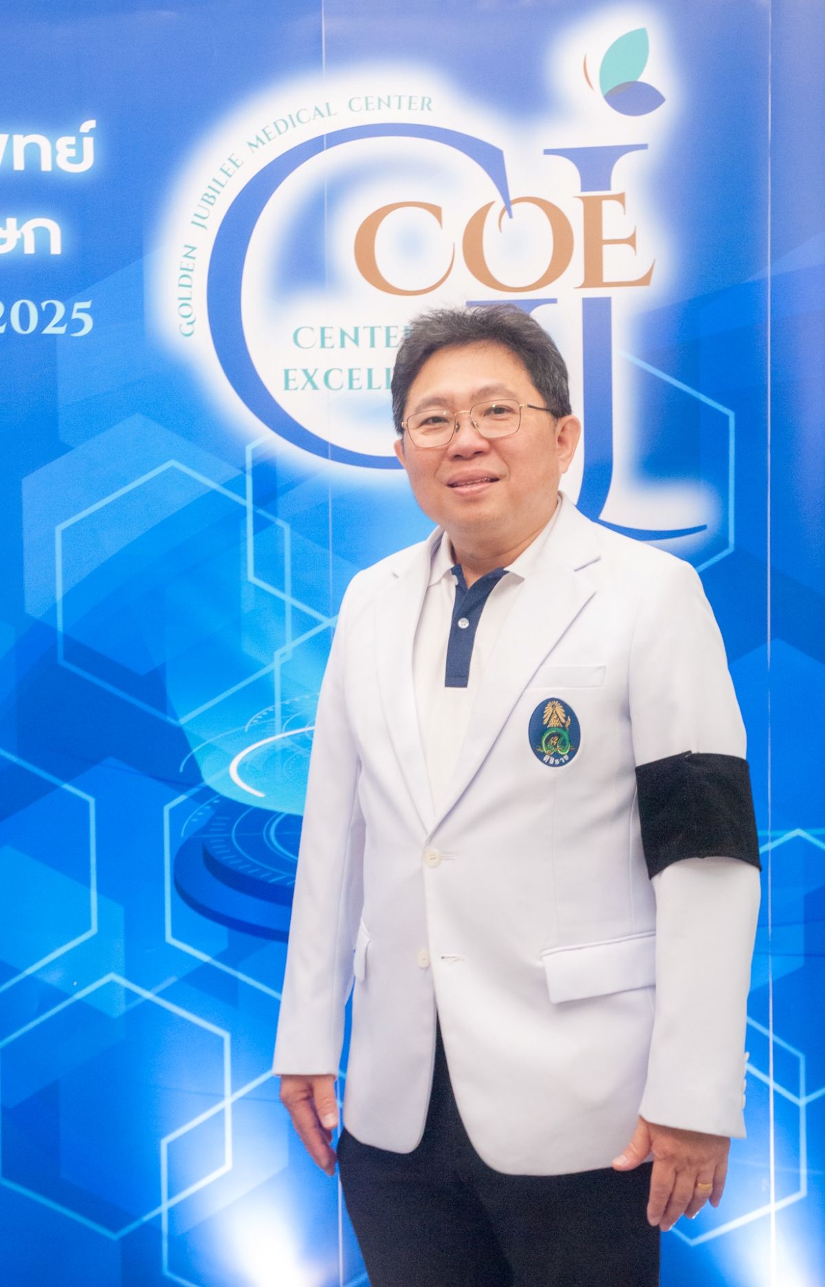 “ปัจจุบัน เราพบว่าปัญหาสุขภาพของผู้ป่วยหนึ่งคนมีค่อนข้างหลากหลาย บางคนอาจมีหลายโรคที่ต้องรักษา หรือบางคนมีเพียงหนึ่งโรค แต่ต้องได้รับการดูแลรักษาจากผู้เชี่ยวชาญหลายทีม ยกตัวอย่าง ศูนย์ความเป็นเลิศผ่าตัดข้อเทียม เราดูแลผู้ป่วยโรคข้อเข่าและข้อสะโพกเสื่อมแบบครบวงจรตั้งแต่ก่อนผ่าตัด ระหว่างผ่าตัด ไปจนถึงฟื้นฟูหลังผ่าตัด โดยใช้เทคโนโลยีหุ่นยนต์ช่วยผ่าตัด (Robotic-assisted Surgery) ที่เพิ่มความแม่นยำ ลดการบาดเจ็บของเนื้อเยื่อ ทำให้ผู้ป่วยเจ็บน้อยลง ฟื้นตัวเร็วขึ้น และปลอดภัยทุกขั้นตอน โดยมีทีมสหสาขาร่วมกันวางแผน ทั้งศัลยแพทย์เฉพาะทาง วิสัญญีแพทย์ พยาบาล และนักกายภาพบำบัด อีกศูนย์หนึ่งคือศูนย์รังสีร่วมรักษาระบบลำตัว ซึ่งใช้เทคโนโลยีขั้นสูง เช่น DSA, CT Scan, Ablation และ Embolization ในการรักษาโรคเฉพาะทางโดยเทคโนโลยีเหล่านี้ช่วยให้การรักษามีความแม่นยำสูง ลดภาวะแทรกซ้อน และเป็นไปตามมาตรฐานสากล ทั้งหมดนี้สะท้อนเป้าหมายของ GJCOE ในการยกระดับมาตรฐานการแพทย์ของไทย” นพ. ตะวัน กล่าว