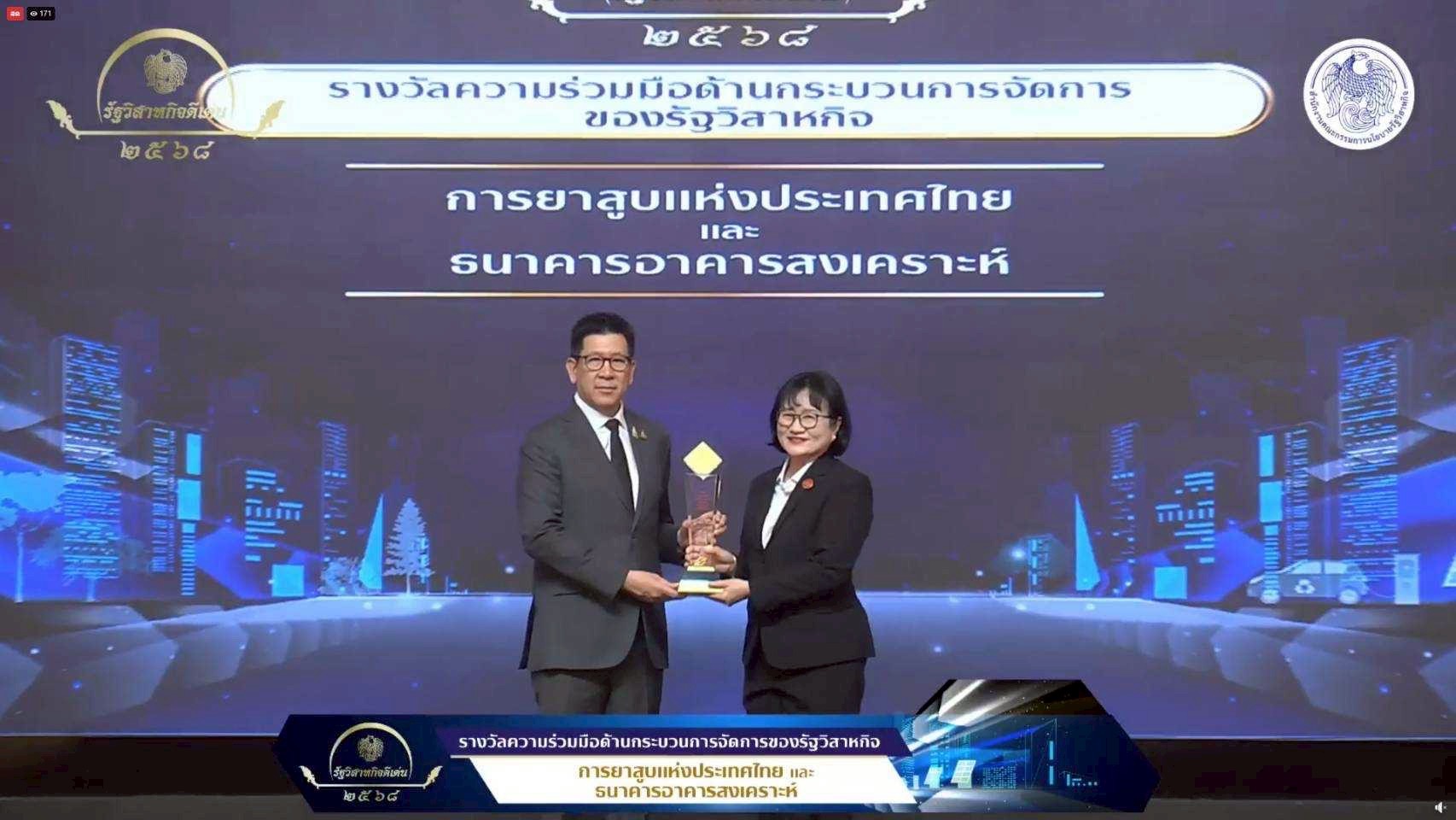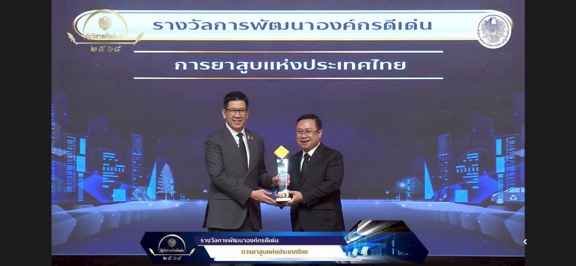 การยาสูบแห่งประเทศไทย (ยสท.) สร้างประวัติศาสตร์แห่งความภาคภูมิใจอีกครั้ง ด้วยการเข้ารับ 3 รางวัล ในงานมอบรางวัลรัฐวิสาหกิจดีเด่น ประจำปี 2568 ประกอบด้วย