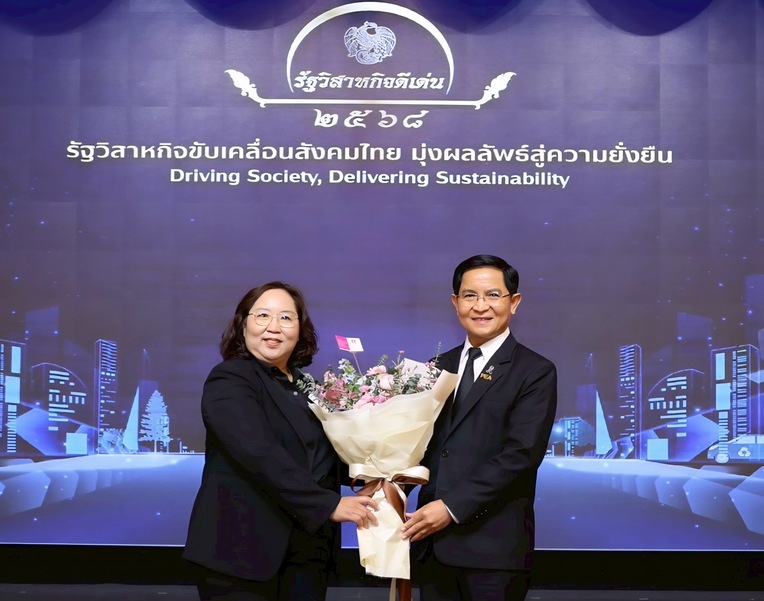 นางลภาวรรณ จันทร์กระจ่าง รองผู้อำนวยการธนาคารออมสิน รักษาการแทนผู้อำนวยการธนาคารออมสิน แสดงความยินดีกับ ดร.มงคล ตรีกิจจานนท์ ผู้ว่าการการไฟฟ้าส่วนภูมิภาค (PEA) ในโอกาสที่ PEA ได้รับรางวัลบริหารจัดการองค์กรดีเด่นและอีกหลายรางวัล ในงานมอบรางวัลรัฐวิสาหกิจดีเด่น (SOE Awards) ประจำปี 2568 ซึ่งจัดโดย สำนักงานคณะกรรมการนโยบายรัฐวิสาหกิจ กระทรวงการคลัง เพื่อยกย่องรัฐวิสาหกิจที่มีผลการดำเนินงานโดดเด่นในแต่ละด้าน เป็นกำลังใจและส่งเสริมให้รัฐวิสาหกิจทุกแห่งมีความมุ่งมั่นในการขับเคลื่อนองค์กรอย่างมีประสิทธิภาพ สร้างคุณค่าต่อเศรษฐกิจและสังคมของประเทศ ณ ตึกสันติไมตรี ทำเนียบรัฐบาล เมื่อวันที่ 22 ธันวาคม 2568