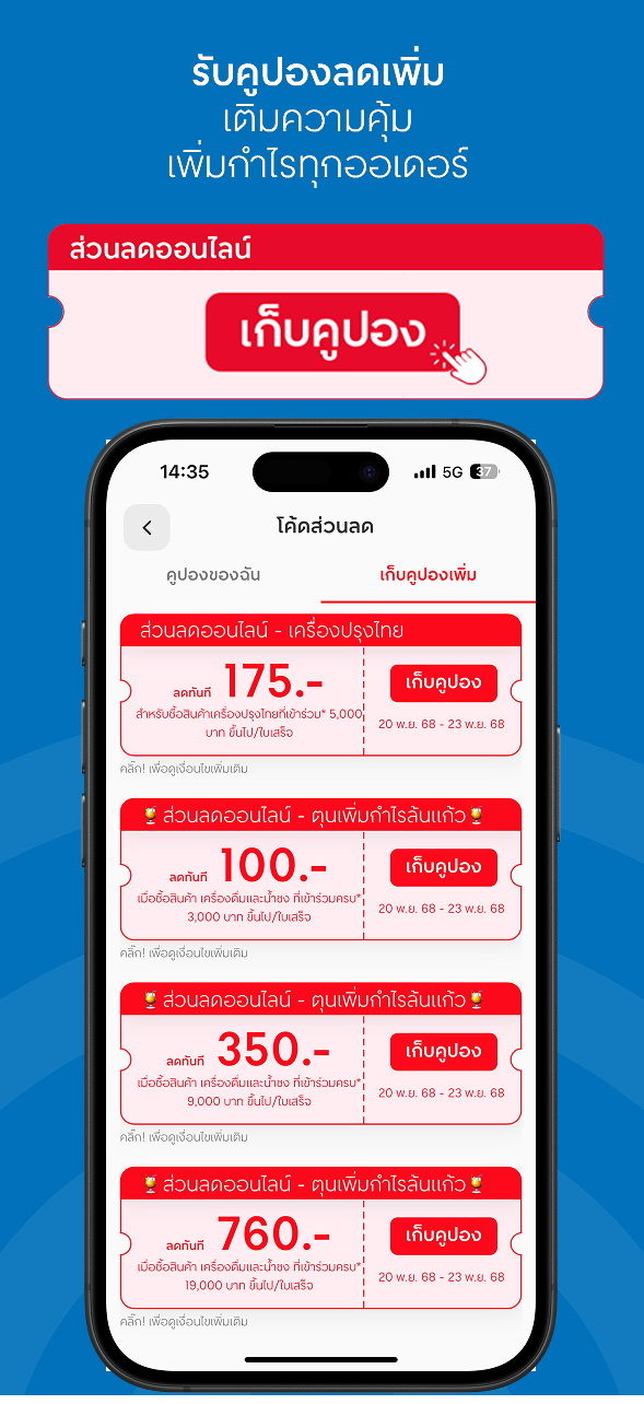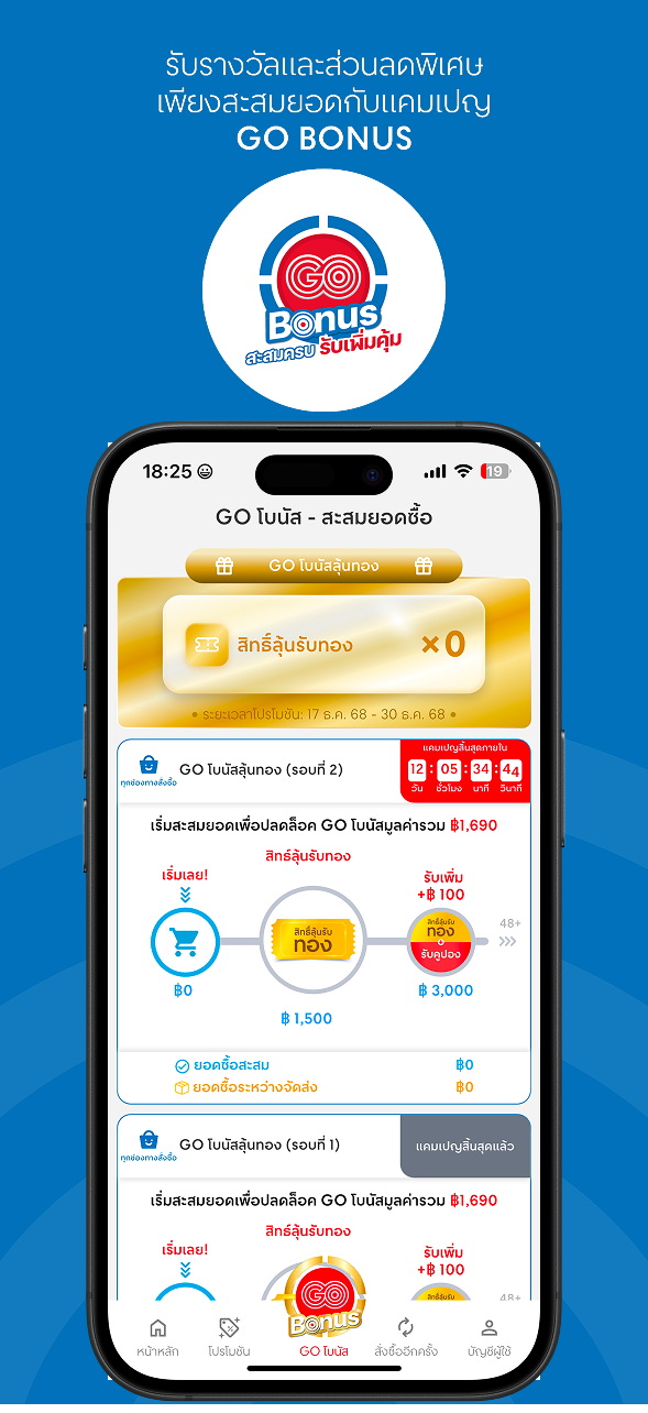 - GO BONUS (Personalized Campaign) – แคมเปญสะสมยอดซื้อเพื่อรับรางวัลและคูปองมากมาย ให้เหมาะกับแต่ละธุรกิจ