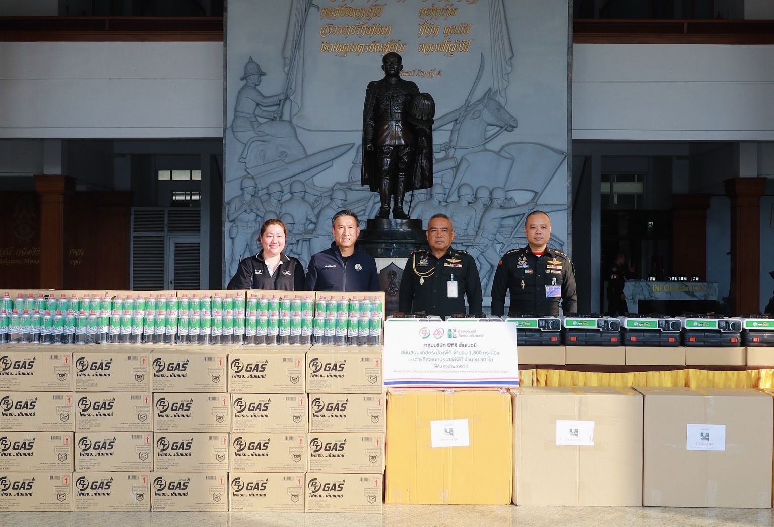 ขณะที่ บริษัท แอตลาส เอ็นเนอยี จำกัด (มหาชน) หรือ ATLAS ได้ร่วมส่งกำลังใจสู่แนวหน้า โดยมอบแก๊สกระป๋องพีที จำนวน 1,800 กระป๋อง พร้อมเตาแก๊สอเนกประสงค์ จำนวน 50 เตา ให้กับกองบัญชาการกองทัพภาคที่ 1 มอบแก๊สกระป๋องพีที จำนวน 3,000 กระป๋อง พร้อมเตาแก๊สอเนกประสงค์ จำนวน 100 เตา ให้กับกองบัญชาการกองทัพภาคที่ 2 ค่ายสุรนารี จังหวัดนครราชสีมา และมอบแก๊สกระป๋องพีที จำนวน 50 ลัง พร้อมเตาแก๊สอเนกประสงค์ จำนวน 50 เตา ให้กับกองบัญชาการกองทัพบก เพื่อนำไปใช้สนับสนุนภารกิจเสริมความมั่นคงของฐานที่มั่นในการปกป้องอธิปไตยของไทย และเตรียมส่งมอบให้กับฐานปฏิบัติการในพื้นที่อื่น ๆ ต่อไป