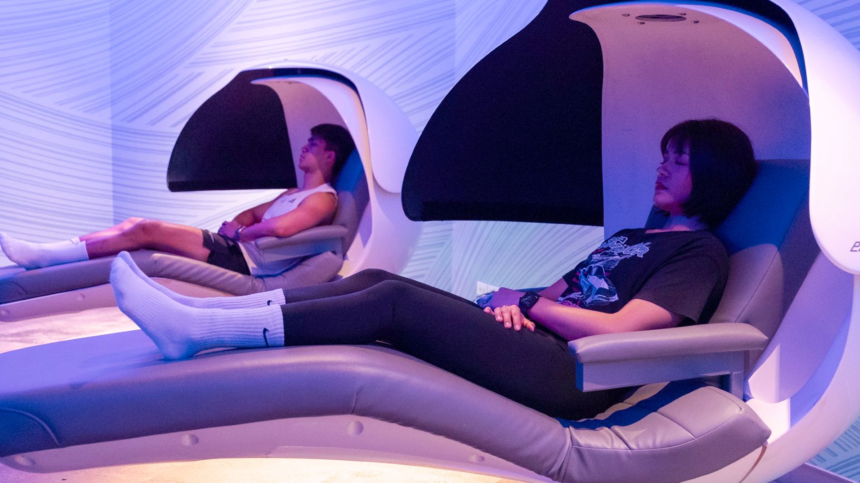 · Sleep Pod เทคโนโลยีไร้แรงโน้มถ่วง พร้อมเสียงบำบัดและระบบสั่นสะเทือนที่อ่อนโยนสำหรับการนอนหลับช่วงเวลาสั้น ๆ เพื่อให้ร่างกายและสมองได้พักผ่อนและฟื้นตัวอย่างเต็มที่