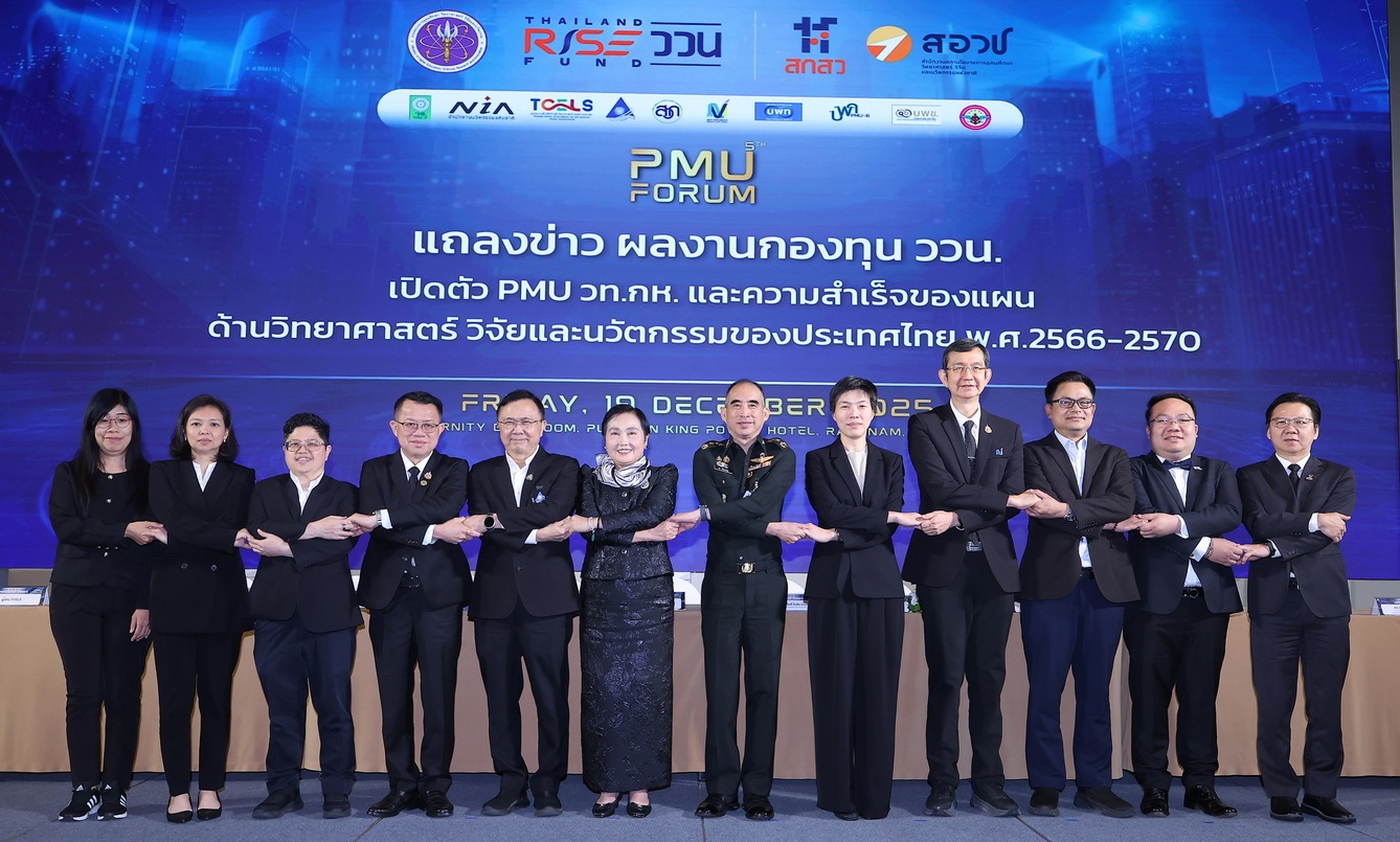 ในโอกาสนี้ สกสว. ได้เปิดตัวหน่วยบริหารและจัดการทุน (PMU) ใหม่ที่จะมาดูแลงานวิจัยด้านความมั่นคงประเทศ โดย พล.ท.คม วิริยเวชกุล เจ้ากรมวิทยาศาสตร์และเทคโนโลยีกลาโหม เปิดเผยว่า ที่ประชุมสภานโยบายการอุดมศึกษา วิทยาศาสตร์ วิจัยและนวัตกรรมแห่งชาติ ได้อนุมัติการจัดตั้งกรมวิทยาศาสตร์และเทคโนโลยีกลาโหม (วท.กห.) สำนักงานปลัดกระทรวงกลาโหม เป็นหน่วยงานในระบบวิจัยและนวัตกรรมประเภทที่ (2) หน่วยงานด้านการให้ทุน ซึ่งมีเป้าหมายสำคัญเพื่อให้โจทย์วิจัยด้านความมั่นคงและการป้องกันประเทศตรงกับความต้องการของกองทัพในฐานะผู้ใช้งานจริง โดยมุ่งเน้นการบูรณาการงานวิจัยด้านความมั่นคงให้มีทิศทางและเป็นเอกภาพ ลดความซ้ำซ้อน และมีการบริหารจัดการแบบครบวงจร รวมถึงวางเป้าหมายลดการพึ่งพาการนำเข้าเทคโนโลยีและยุทโธปกรณ์จากต่างประเทศ ทั้งนี้ เพื่อให้การดำเนินงานเป็นไปด้วยความเรียบร้อย คณะ วท.กห. จึงได้เข้าพบผู้บริหาร สกสว. เพื่อหารือแนวทางการดำเนินงานและเตรียมความพร้อมในฐานะ PMU ความมั่นคง โดยเบื้องต้นกรอบการบริหารและจัดการทุนน่าจะสอดคล้องกับแผนการพัฒนาวิทยาศาสตร์และเทคโนโลยีป้องกันประเทศ เพื่อประโยชน์ด้านความมั่นคง และเสริมสร้างเศรษฐกิจของประเทศ โดยขอความร่วมมือและข้อเสนอแนะจากทุกหน่วยงานในการปรับโครงสร้าง กฎระเบียบ และระบบต่าง ๆ เพื่อให้ทำงานได้อย่างมีประสิทธิภาพ