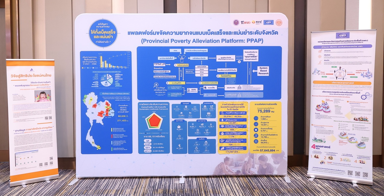 เสาที่ 3 การลดความยากจนและความเสมอภาค ได้แก่ เส้นทาง “จากความยากจนสู่โอกาสใหม่ด้วยวิทยาศาสตร์ นวัตกรรม และพลังพื้นที่” (กลุ่มจังหวัดชายแดนใต้ กลุ่มจังหวัดร้อยแก่นสารสินธุ์ และกลุ่มจังหวัดภาคเหนือตอนบน) เช่น การพัฒนาแพลตฟอร์มคนจนที่ปักหมุดการเปลี่ยนแปลงด้วยข้อมูล เทคโนโลยี และชุมชน สร้างผลกระทบต่อเศรษฐกิจฐานราก คือ รายได้ครัวเรือนยากจนเพิ่มขึ้นประมาณร้อยละ 15-20 เกิดอาชีพใหม่จากเกษตรมูลค่าเพิ่ม การแปรรูป และเศรษฐกิจชุมชน ลดต้นทุนและเพิ่มผลิตภาพด้วยเทคโนโลยีที่เหมาะสม ขณะที่ด้านสังคมและสิ่งแวดล้อม ช่วยลดความเหลื่อมล้ำเชิงพื้นที่ ชุมชนเป็นเจ้าของการพัฒนา เชื่อมการแก้จนกับสิ่งแวดล้อม ภัยพิบัติและสังคมสูงวัย และใช้วิทยาศาสตร์สนับสนุนนโยบายสิ่งแวดล้อม