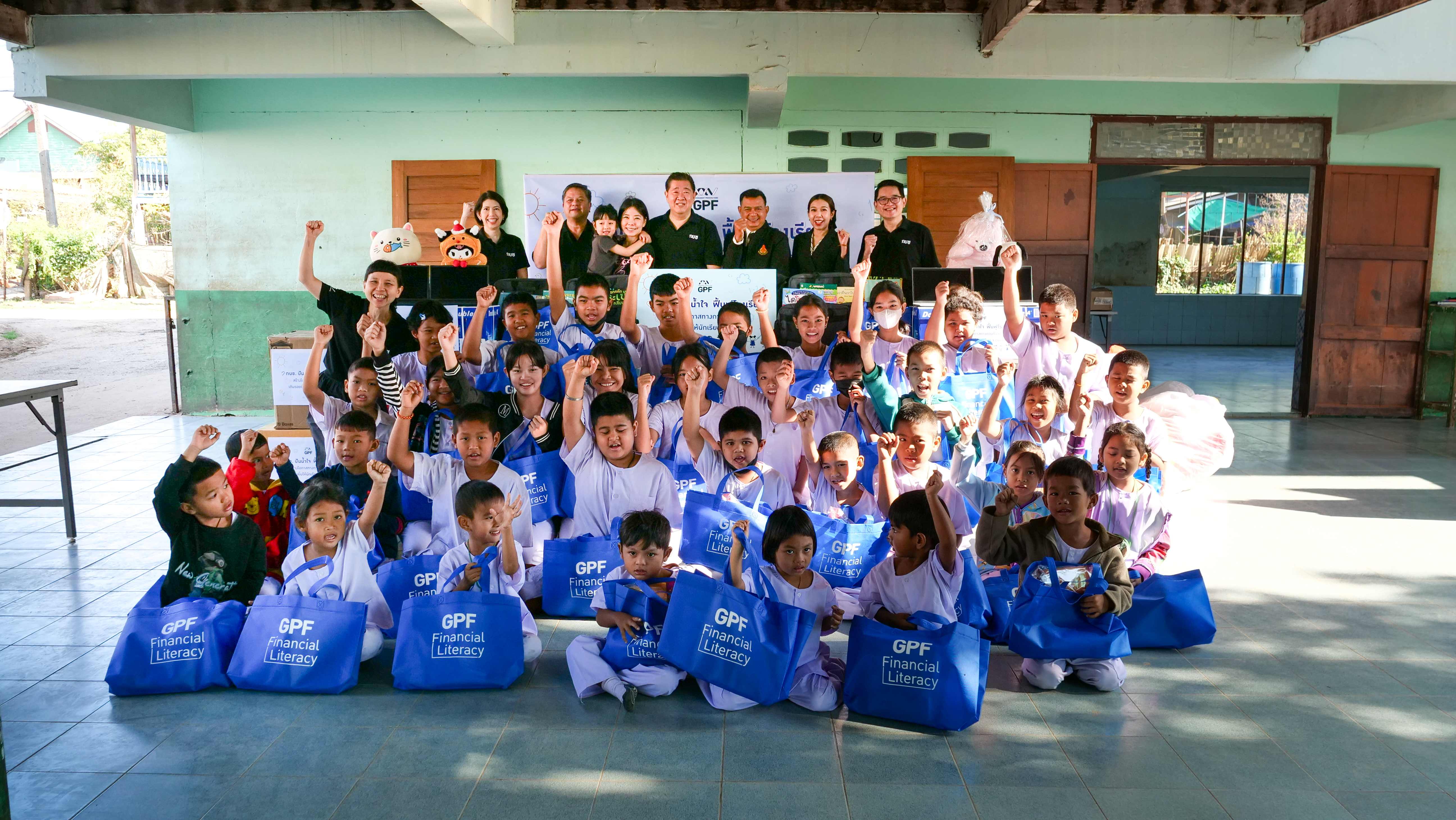 โดยโรงเรียนทั้ง 4 แห่งได้รับผลกระทบจากเหตุการณ์น้ำท่วมในพื้นที่จังหวัดพระนครศรีอยุธยา ทำให้มีความต้องการการสนับสนุนเพื่อซ่อมแซมและปรับปรุงสภาพแวดล้อมการเรียนรู้ให้กลับมาพร้อมใช้งานซึ่ง กบข. ได้จัดเตรียมสิ่งของที่จำเป็นและตามความต้องการของโรงเรียน อาทิ อุปกรณ์ซ่อมแซมและปรับปรุงอาคาร อุปกรณ์การเรียนการสอน อุปกรณ์กีฬาและเครื่องแต่งกาย เป็นต้น นอกจากนี้ กบข. ยังได้เชิญชวนพนักงาน กบข. ร่วมบริจาคของเล่นและตุ๊กตา เพื่อเป็นการให้กำลังใจและสร้างรอยยิ้มให้แก่น้อง ๆ ในโรงเรียนที่ได้รับผลกระทบ