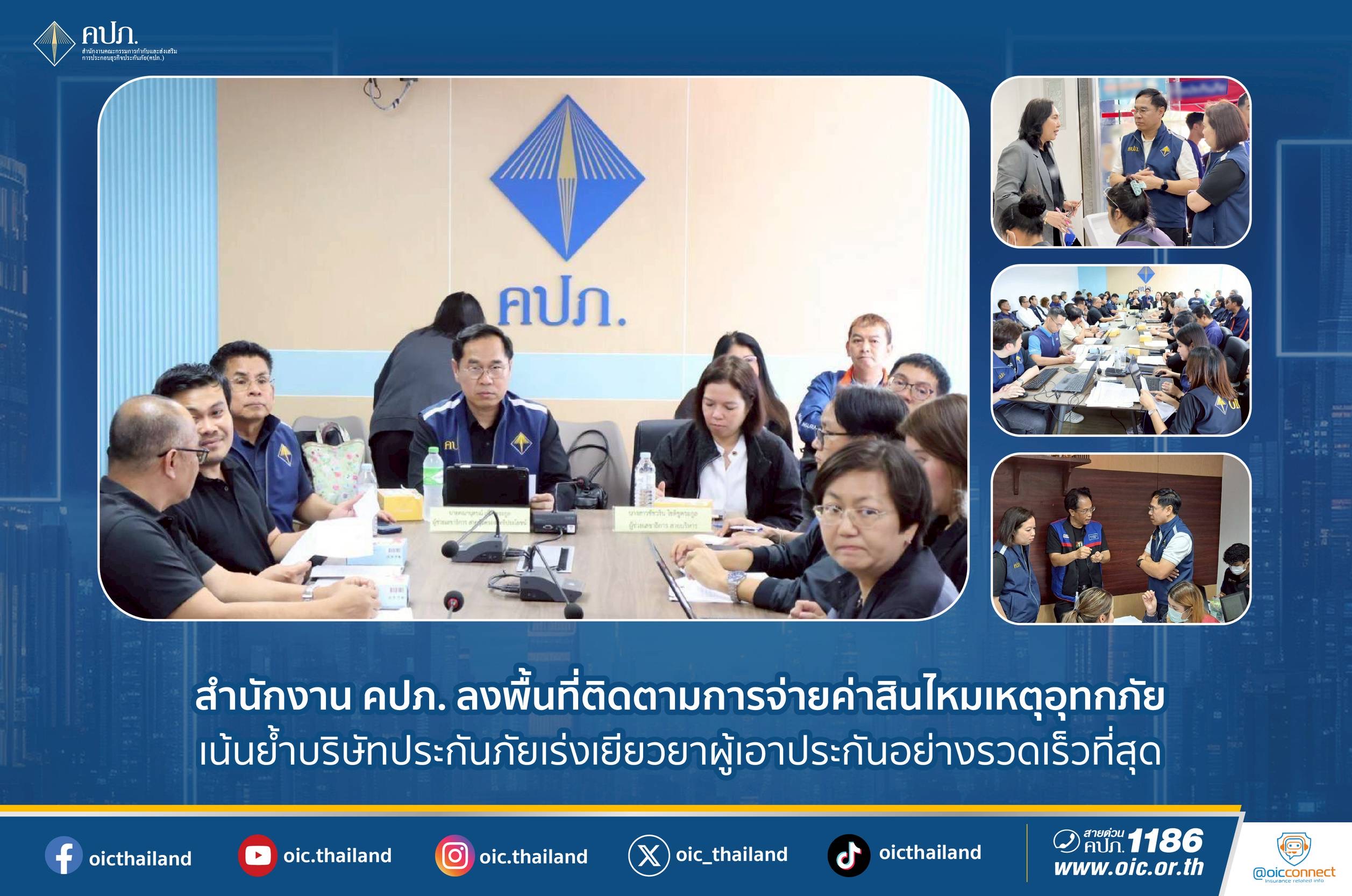 สำนักงานคณะกรรมการกำกับและส่งเสริมการประกอบธุรกิจประกันภัย (สำนักงาน คปภ.) จัดประชุมติดตามเร่งรัดการชดใช้ค่าสินไหมทดแทนแก่ผู้เอาประกันภัยในพื้นที่อุทกภัยในภาคใต้อย่างต่อเนื่อง โดยมอบหมายให้นายคณานุสรณ์ เที่ยงตระกูล ผู้ช่วยเลขาธิการ สายคุ้มครองสิทธิประโยชน์ และนางสาวชัชวริน โชติชูตระกูล ผู้ช่วยเลขาธิการ สายบริหาร ร่วมตรวจติดตามข้อมูลการจ่ายค่าสินไหมทดแทนของบริษัทประกันภัย โดยมีเป้าหมายในการเร่งรัดบริษัทประกันภัยให้พิจารณาแล้วเสร็จภายในปี 2568 โดยมีผู้บริหารของบริษัทประกันวินาศภัยที่มีปริมาณการเรียกร้องค่าสินไหมทดแทนสูง จำนวน 27 แห่ง เข้าร่วมประชุมเมื่อวันที่ 22 ธันวาคม 2568 ณ สำนักงาน คปภ. ภาค 9 (สงขลา)