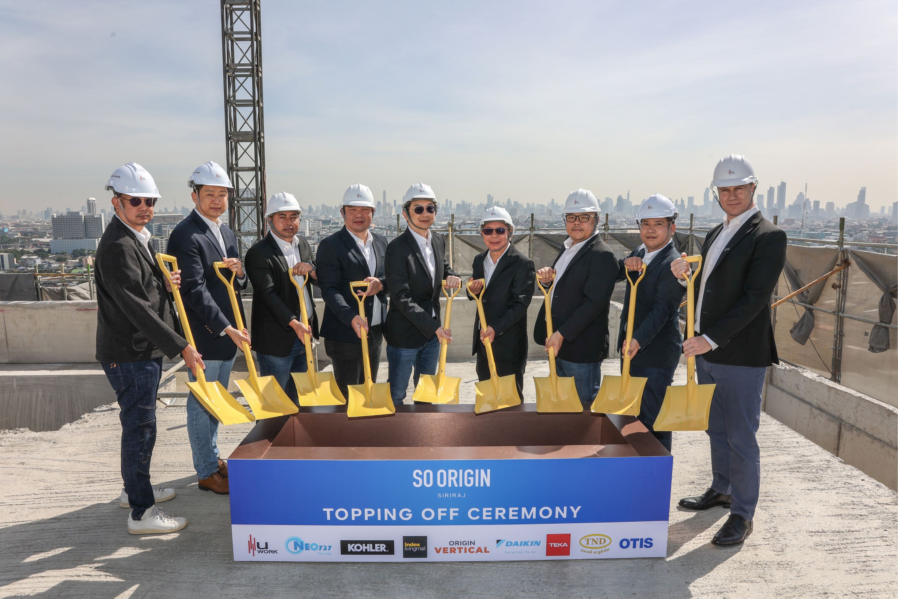 บริษัท ออริจิ้น เวอร์ติเคิล คอร์ปอเรชั่น จำกัด หรือ ORIGIN VERTICAL โดย นายกิตติชัย อัศวเกศมรกต ประธานเจ้าหน้าที่ฝ่ายปฏิบัติการ พร้อมด้วยพันธมิตรทางธุรกิจ อาทิ บริษัท อินเด็กซ์ ลิฟวิ่งมอลล์ จำกัด (มหาชน), บริษัท โคห์เลอร์ (ประเทศไทย) จำกัด (มหาชน), บริษัท เตก้า (ประเทศไทย) จำกัด, บริษัท ไดกิ้น อินดัสทรีส์ (ประเทศไทย) จำกัด, บริษัท โอทิส เอเลเวเทอร์ (ประเทศไทย) จำกัด, บริษัท ยูเวิร์ค999 จำกัด, บริษัท นีโอ 727 จำกัด, บริษัท 22 คอนซัลแต้นท์ แอนด์ แมเนจเม้นท์ จำกัด และ บริษัท ธนบดี อะลูมินั่ม จำกัด ร่วมพิธีเทปูนปิดงานก่อสร้างโครงสร้างอาคารภายนอก (TOPPING OFF CEREMONY) โครงการ โซ ออริจิ้น ศิริราช (SO Origin Siriraj) คอนโดฯ ระดับพรีเมียมแห่งใหม่ ตั้งอยู่ใจกลาง Medical Hub & Boutique Lifestyle บนทำเลศักยภาพย่านไฟฉาย-ศิริราช ใกล้สถานีรถไฟฟ้า MRT สถานีไฟฉาย สามารถทำยอดขายได้แล้ว 97% โดยคาดว่าโครงการจะเริ่มเปิดให้ลูกค้าตรวจสภาพห้อง และรับมอบห้องชุด ในช่วงไตรมาส 2 ปี 2569