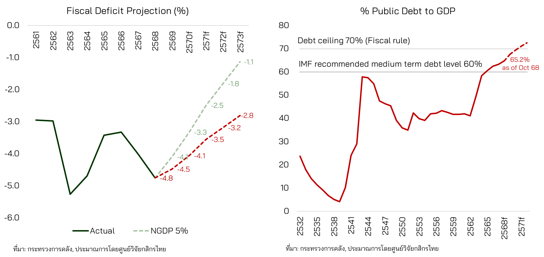 · หนี้สาธารณะแตะเพดานที่ 70% ของ GDP ในปี 2570 โดยในเดือนต.ค. 2568 มีสัดส่วนที่ 65.2% (รูปที่ 3)