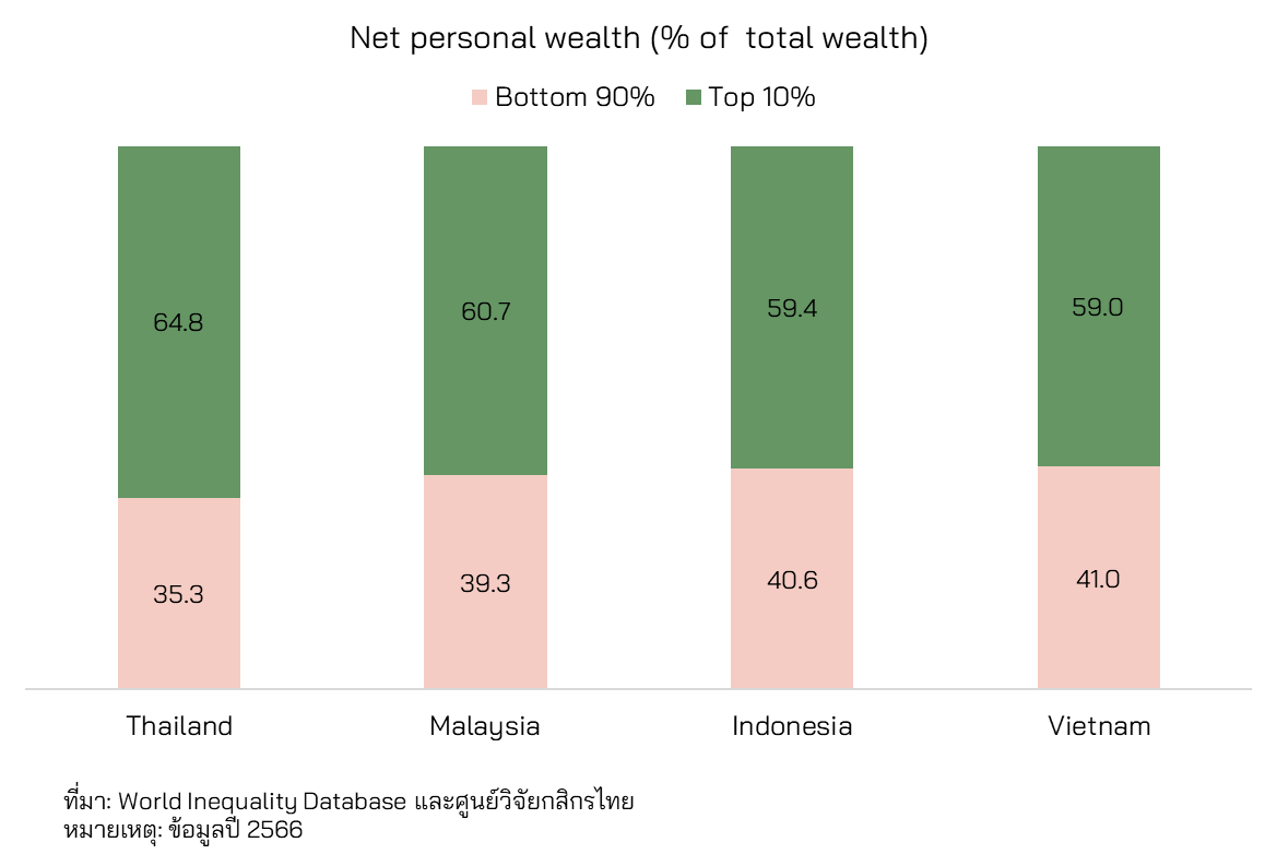 รูปที่ 12 ประชากรกลุ่มบนสุด 10% ของไทยมีการถือครองทรัพย์สินสัดส่วนสูงกว่าประเทศอื่นในภูมิภาค