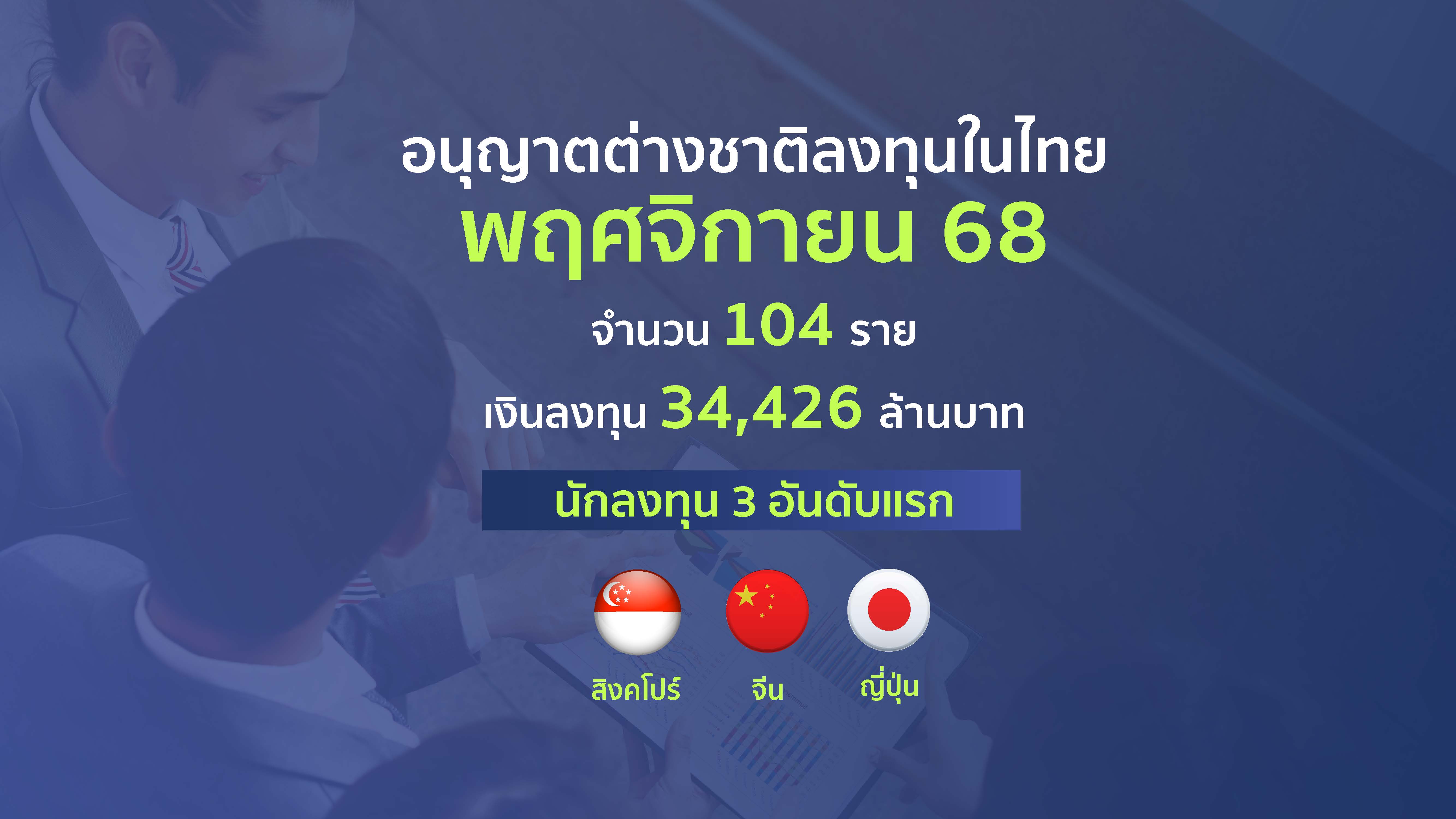 เฉพาะเดือนพฤศจิกายน 2568 มีการอนุญาตให้คนต่างชาติเข้ามาประกอบธุรกิจในประเทศไทย 104 ราย