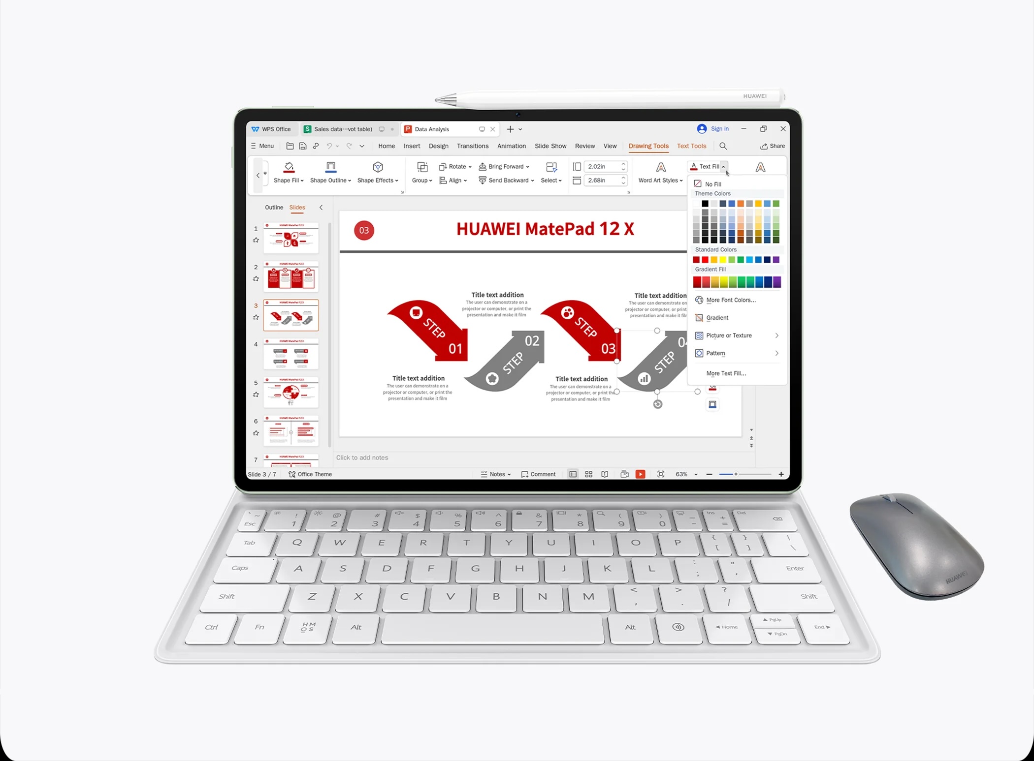 HUAWEI MatePad 12 X (2026) ยกระดับการทำงานบนแท็บเล็ตให้เหนือชั้นด้วย PC-level WPS Office 3.0 ที่ยกฟีเจอร์จากเวอร์ชันพีซีมาแบบครบถ้วน ช่วยให้จัดการไฟล์ Word, Excel และ Powerpoint ได้อย่างมืออาชีพ พร้อมความสะดวกในการส่งต่อข้อมูลผ่าน SuperHub และ Cloud Sync ข้ามอุปกรณ์ได้อย่างไร้รอยต่อ นอกจากนี้ยังตอบโจทย์สายจดและสายวาดด้วย HUAWEI Notes เวอร์ชันล่าสุดที่รองรับการแบ่งหน้าจอทำงาน และแอปฯ GoPaint ที่ใช้งานร่วมกับปากกา M-Pencil Pro ได้อย่างอัจฉริยะผ่านปุ่มลัด Star Ring และการสั่งงานด้วยแรงบีบเพื่อเปลี่ยนเครื่องมือ ด้านความบันเทิงและการใช้งานจริงก็โดดเด่นด้วยหน้าจอ Ultra-Clear PaperMatte ขนาด 12 นิ้ว ที่ช่วยลดแสงสะท้อนและรอยนิ้วมือ มอบสัมผัสการเขียนที่เป็นธรรมชาติเหมือนกระดาษจริงพร้อมช่วยถนอมสายตา ปิดท้ายด้วยแบตเตอรี่ความจุสูงถึง 10,100 mAh ที่ใช้งานวิดีโอต่อเนื่องได้นาน 14 ชั่วโมง พร้อมรองรับการชาร์จไว HUAWEI SuperCharge ที่ช่วยให้คุณลุยงานและพักผ่อนได้อย่างเต็มที่ตลอดวัน