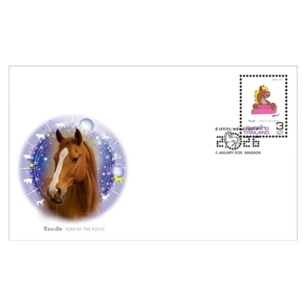 “แสตมป์ชุดนักษัตรประจำปี (มะเมีย) ถ่ายทอดความหมายของนักษัตร “มะเมีย” หรือ “ม้า” ในฐานะสัญลักษณ์แห่งพลังการขับเคลื่อน ความกล้าหาญ การเปลี่ยนแปลง และความรวดเร็ว อีกทั้งยังสื่อถึงอิสรภาพและความกระตือรือร้น สะท้อนจิตวิญญาณแห่งการก้าวไปข้างหน้าอย่างไม่หยุดยั้ง สอดคล้องกับการเริ่มต้นศักราชใหม่อย่างมีพลังและความหวัง เช่นเดียวกับไปรษณีย์ไทยที่มุ่งมั่นพัฒนาแสตมป์ให้เป็นมากกว่าสื่อชำระค่าบริการไปรษณีย์ แต่เป็นสื่อทางวัฒนธรรมที่บันทึกเรื่องราว ความเชื่อ และคุณค่าของสังคมไทยในแต่ละยุคสมัย เพื่อเชื่อมโยงผู้คนทุกช่วงวัยผ่านงานศิลป์ขนาดเล็กที่เปี่ยมด้วยความหมาย และส่งต่อมรดกทางวัฒนธรรมจากรุ่นสู่รุ่นอย่างยั่งยืน”