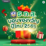 ธ.ก.ส.ส่งมอบของขวัญต้อนรับปีใหม่ 2569 ให้เกษตรกรลูกค้า ทั้งคืนดอกเบี้ย Cashback 10% ของยอดดอกเบี้ยที่ชำระสูงสุด 1,000 บาท การสะสมแต้มแลกของรางวัลฟรีที่สาขา รวมถึงการรับกรมธรรม์เงินฝากสงเคราะห์ชีวิต ธ.ก.ส.ที่ให้ความคุ้มครองสูงสุด 100,000 บาท ผ่านมาตรการชำระดีมีโชค โครงการสินเชื่อแทนคุณ แทนใจ และแคมเปญอุ่นใจปีใหม่ ปรับปรุงโครงสร้างหนี้ ตั้งแต่วันที่ 1 – 31 ม.ค.69