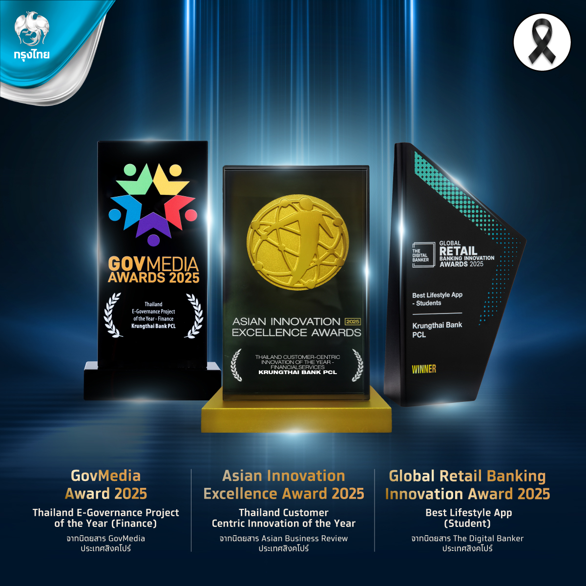 ธนาคารกรุงไทย ตอกย้ำความเป็นผู้นำด้านนวัตกรรมดิจิทัลในอุตสาหกรรมการเงิน คว้า 3 รางวัลระดับนานาชาติ จากความสำเร็จของ Krungthai Campus App และ U-App สะท้อนถึงศักยภาพในการพัฒนาบริการทางการเงินสมัยใหม่ ยกระดับระบบนิเวศด้านการศึกษาให้เชื่อมต่อกับบริการทางการเงินได้อย่างไร้รอยต่อ ตอบโจทย์ความต้องการของผู้ใช้งานทุกกลุ่ม และสนับสนุนสังคมไทยก้าวสู่ยุคดิจิทัลอย่างเต็มรูปแบบ โดยรางวัลที่ธนาคารได้รับ