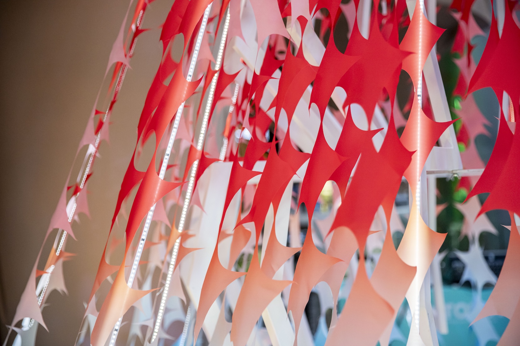 คุณวิณ อธิบายว่า “โจทย์ของต้นคริสต์มาสขนาดใหญ่นี้ท้าทายมาก เราต้องคิดตั้งแต่โครงสร้าง ความสวยงาม ไปจนถึงการใช้ทรัพยากรให้น้อยที่สุด แต่ยังคงพลังและความหมายของการเฉลิมฉลองเอาไว้” ขณะที่ คุณภทรฤน มองว่า ความยั่งยืนเริ่มต้นตั้งแต่กระบวนการคิด และดีไซน์ตั้งต้นจากความรับผิดชอบ “แม้จะมีวัสดุเพียงพอ แต่เรารู้สึกว่าหน้าที่ของดีไซเนอร์คือการเลือกใช้เท่าที่จำเป็น เราจึงเลือกใช้เทคนิคเลเซอร์คัตและการจัดเลเยอร์ เพื่อให้ผ้ามีน้ำหนักเบา โปร่ง แต่ยังคงมิติและอารมณ์ของงานเอาไว้อย่างครบถ้วน”