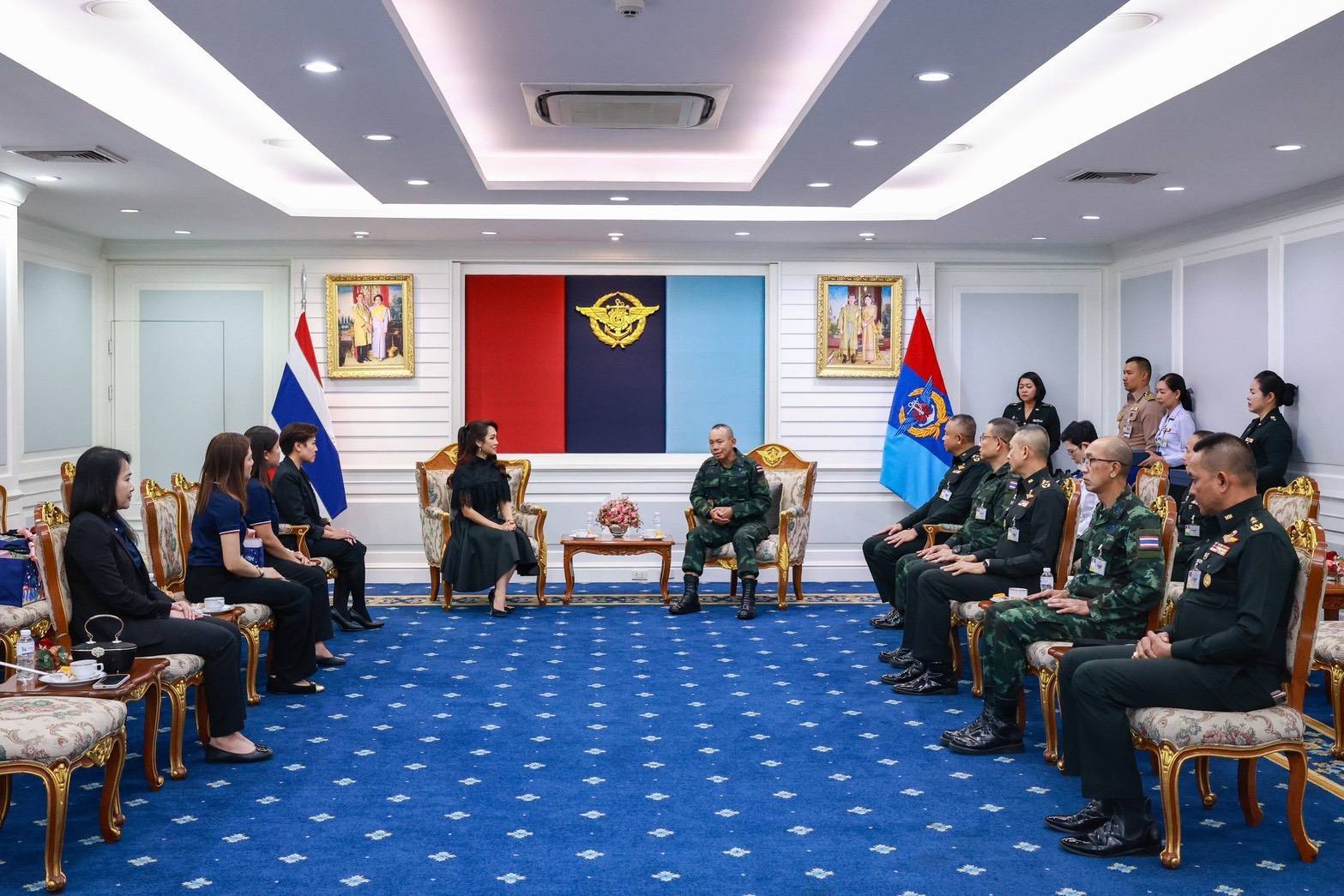 โดยมี พลเอกอุกฤษฎ์ บุญตานนท์ ผู้บัญชาการทหารสูงสุด (กลาง) พลเอกนพดล ปิ่นทอง รองผู้บัญชาการทหารสูงสุด (ที่ 4 จากขวา) พลเอก ชิดชนก นุชฉายา เสนาธิการทหาร (ที่ 3 จากขวา) พลเอก กิตติพงศ์ ชื่นใจชน รองเสนาธิการทหาร (ที่ 2 จากขวา) พลโท นนธวัฒน์ ภักดิพงศ์พิชญะ รองผู้บัญชาการหน่วยบัญชาการทหารพัฒนา (ขวาสุด) ให้เกียรติรับมอบ ณ ห้องรับรอง 12 อาคารกองบัญชาการกองทัพไทย เมื่อวันที่ 22 ธันวาคม 2568