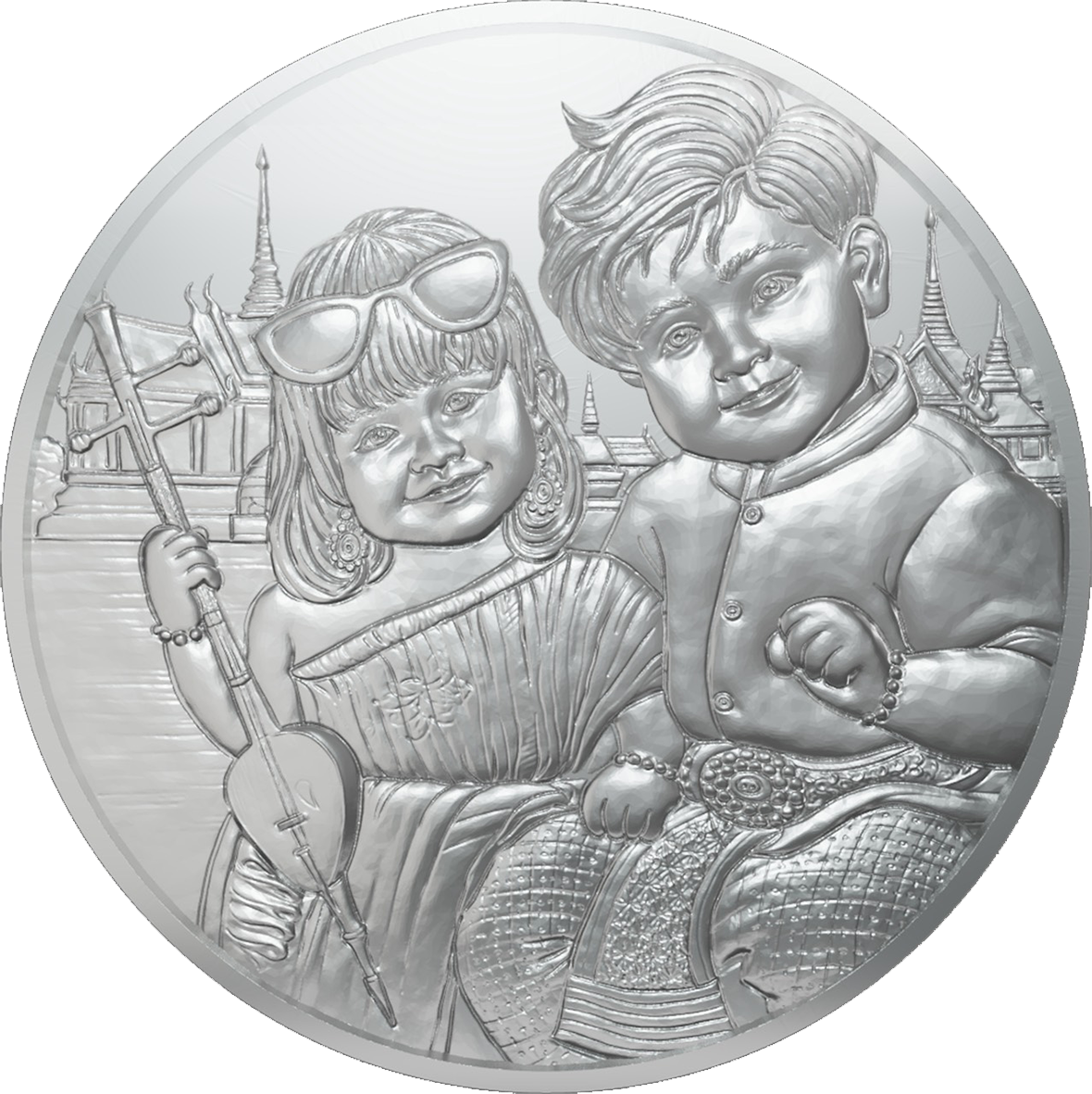นายอัครุตม์ กล่าวต่อว่า กรมธนารักษ์ ได้จัดทำเหรียญที่ระลึกวันเด็กแห่งชาติ 2569 เพื่อเป็นที่ระลึก และให้ความสำคัญกับเด็กๆ และเยาวชนของชาติ โดยมีลวดลายเหรียญที่สื่อถึงเอกลักษณ์ของความเป็นไทยผ่านความน่ารักสดใสของเด็กที่แต่งกายชุดไทย เล่นดนตรีไทย เพื่อถ่ายทอดวัฒนธรรมไทยและยังสื่อถึงความอบอุ่นในครอบครัวไทย ความรักของพี่ชายกับน้องสาว ด้านหลังมีสถาปัตยกรรมที่มีความวิจิตรงดงามเป็นรูปแบบศิลปะไทยที่สืบทอดมายาวนาน โดยผลิตเป็นเหรียญคิวโปรนิกเกิล ขนาดเส้นผ่าศูนย์กลาง 32 มิลลิเมตร จำหน่ายพร้อมตลับ ราคาเหรียญละ 20 บาท