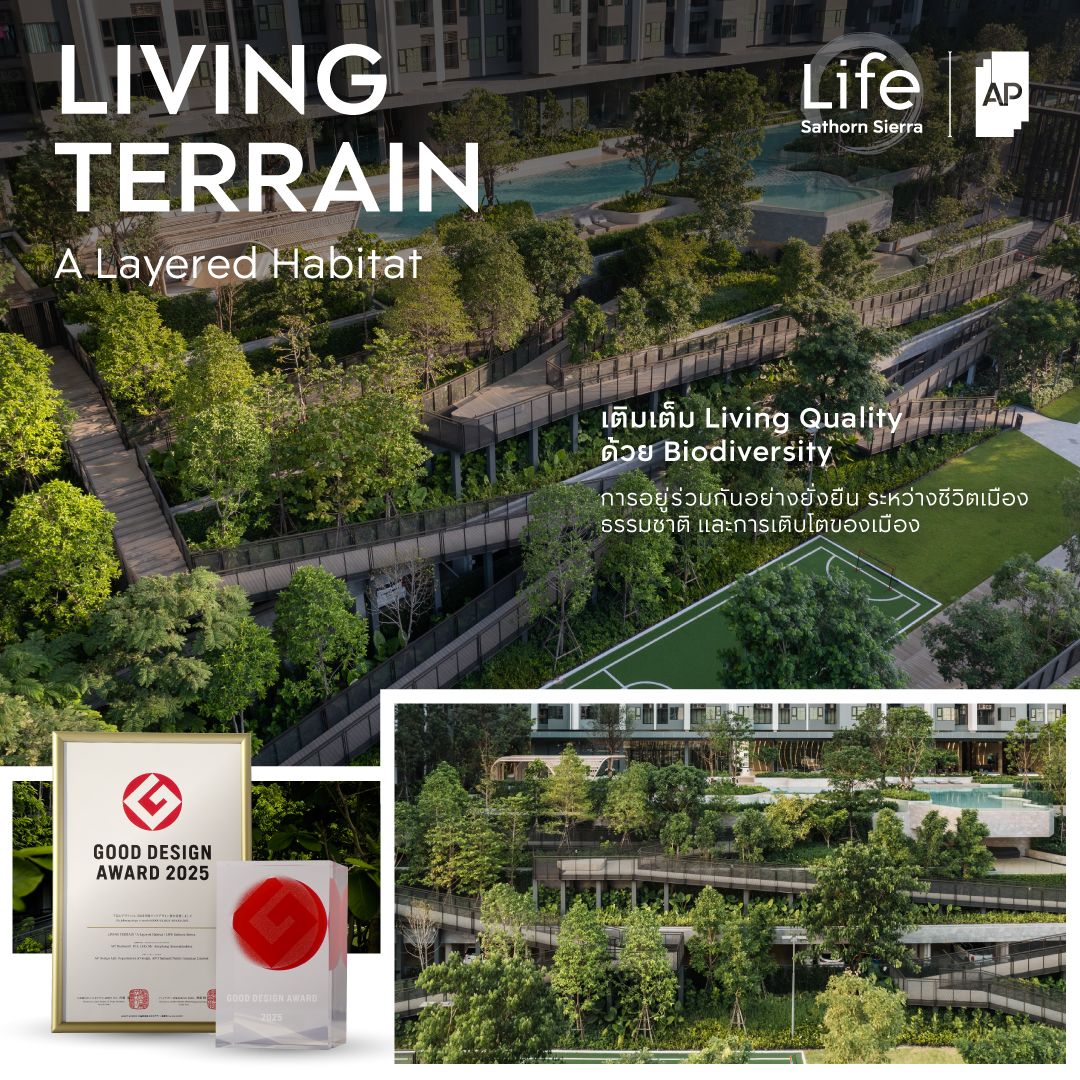 บทสรุปคำตัดสินของคณะกรรมการ GOOD DESIGN AWARD ได้กล่าวถึงโครงการ LIFE Sathorn Sierra - LIVING TERRAIN: A Layered Habitat ว่า “LIFE Sathorn Sierra เป็นการพัฒนาและการออกแบบคอนโดมิเนียมที่ยอดเยี่ยมที่มีเป้าหมายเพื่อสร้างความกลมกลืนกับธรรมชาติและฟื้นฟูระบบนิเวศในที่พักอาศัยของคนเมือง พื้นที่ส่วนกลาง LIVING TERRAIN: A Layered Habitat ที่ได้รับการดีไซน์เป็นแพลตฟอร์มพื้นที่ส่วนกลาง 5 ระดับ ไม่เพียงแต่สนับสนุนคุณภาพชีวิตที่ดี สุขภาพกายและสุขภาพใจของผู้อยู่อาศัยเท่านั้น แต่ยังช่วยปกป้องความหลากหลายทางชีวภาพในเมือง ผ่านการผนวกธรรมชาติเข้าเป็นส่วนหนึ่งของโครงสร้างอาคารอย่างเป็นระบบ”