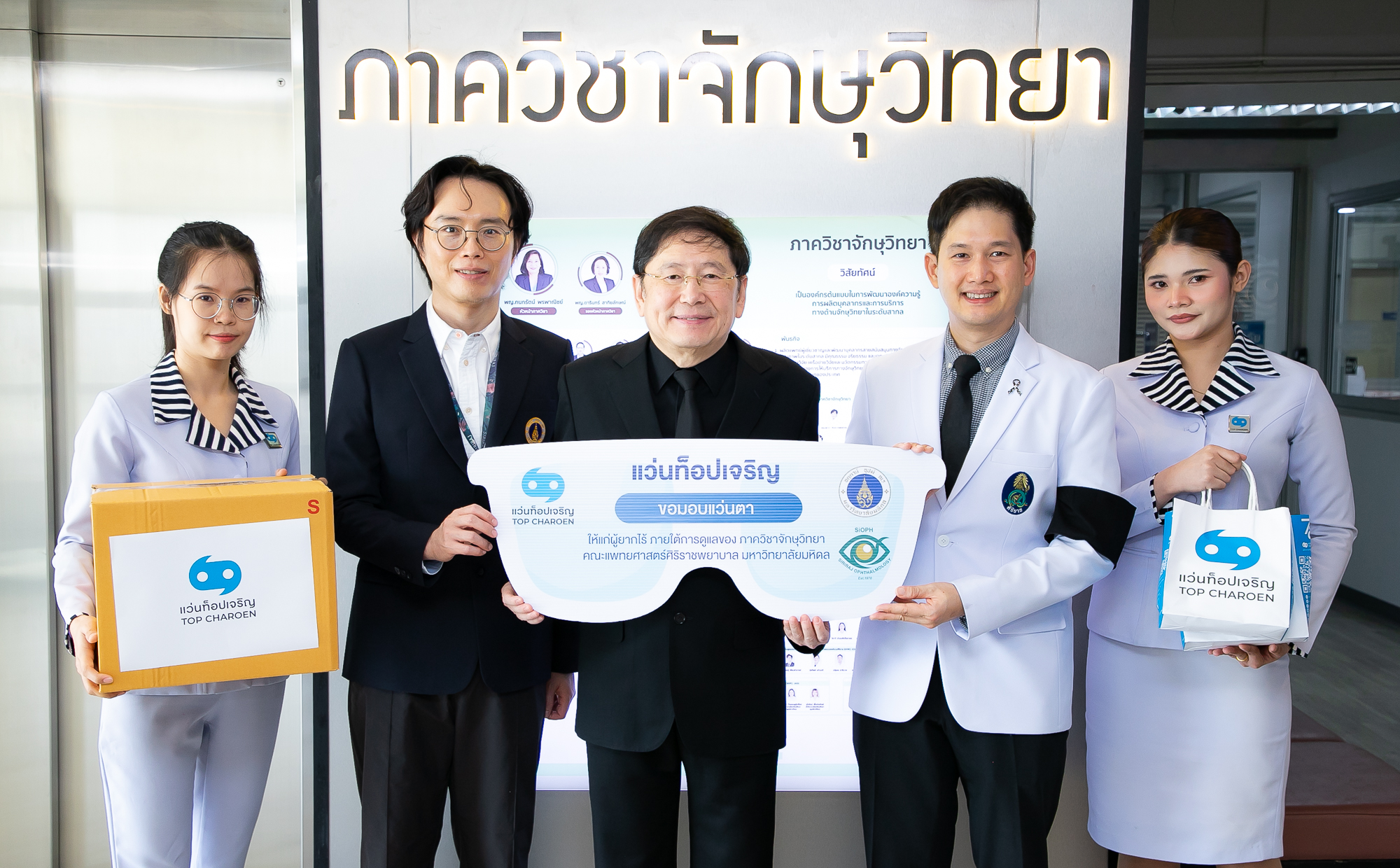 แว่นท็อปเจริญ นำโดย นพศักดิ์ ตรีพรชัยศักดิ์ ประธานเจ้าหน้าที่บริหาร บริษัท ร่วมเจริญพัฒนา จำกัด (มหาชน) ส่งมอบแว่นสายตาตัดประกอบเลนส์เฉพาะบุคคล ให้แก่ ภาควิชาจักษุวิทยา คณะแพทยศาสตร์ศิริราชพยาบาล มหาวิทยาลัยมหิดล ณ โรงพยาบาลศิริราช เพื่อนำไปช่วยเหลือประชาชนผู้ยากไร้ ที่อยู่ภายใต้การดูแลของภาควิชาจักษุวิทยา อาทิ เด็ก เยาวชน และผู้สูงอายุที่ประสบปัญหาด้านการมองเห็นและขาดทุนทรัพย์ในการตัดแว่น ให้มีแว่นสายตาไว้ใช้ในการดำรงชีวิตประจำวันอย่างปกติสุขและทำกิจกรรมต่างๆ ได้สะดวกยิ่งขึ้น โดยได้รับเกียรติจาก รศ.ดร.นพ.ภัทรบุตร มาศรัตน รองคณบดีฝ่ายบริหาร คณะแพทยศาสตร์ศิริราชพยาบาล มหาวิทยาลัยมหิดล และรศ.นพ.พิทยา ภมรเวชวรรณ หัวหน้าสาขาจักษุวิทยาเด็กและกล้ามเนื้อตา คณะแพทยศาสตร์ศิริราชพยาบาล มหาวิทยาลัยมหิดล เป็นผู้รับมอบ