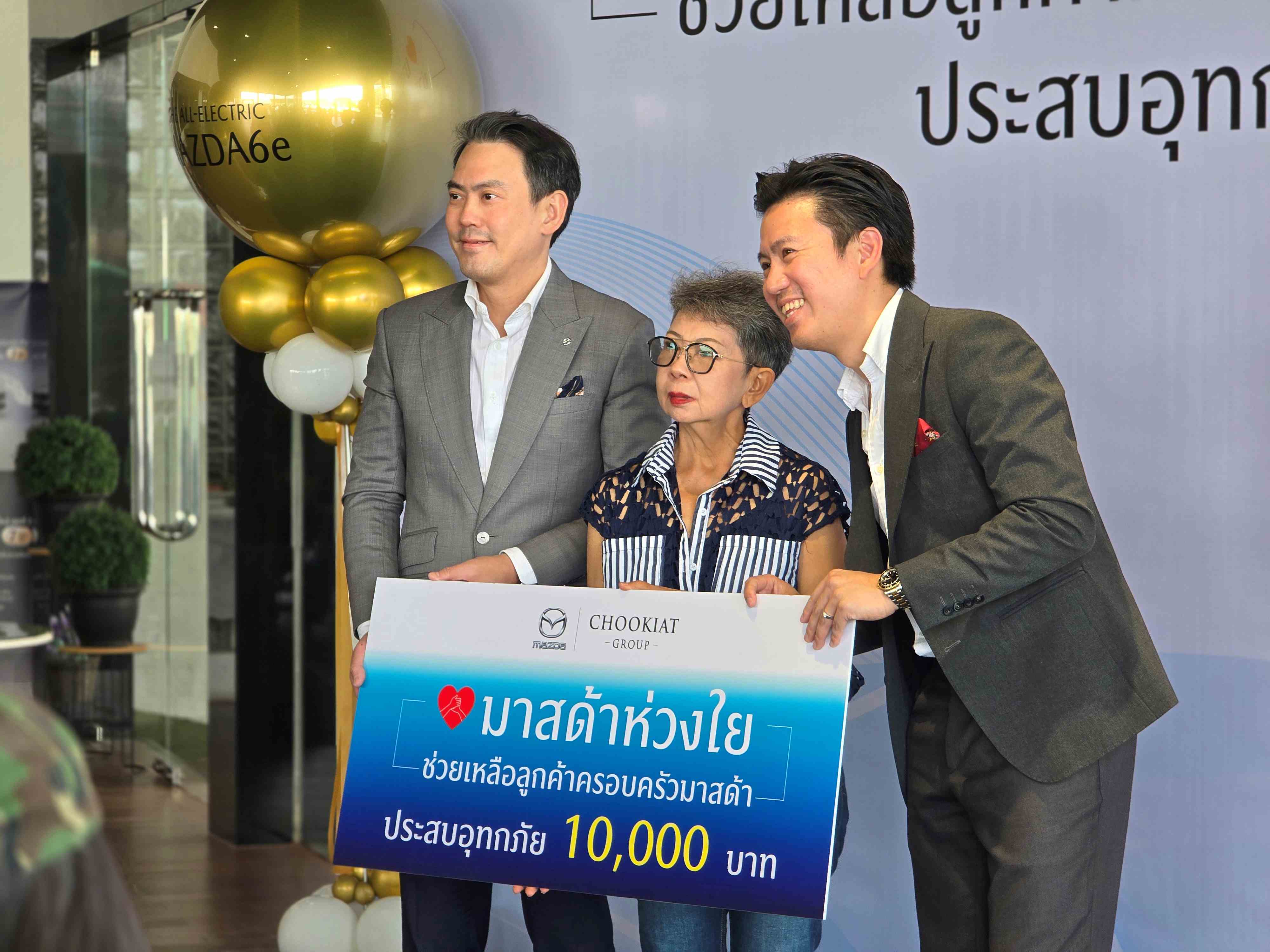 นายธีร์ เพิ่มพงศ์พันธ์ ประธานกรรมการบริหารและซีอีโอ และ มร. ทาเคชิ ซาโตะ รองประธานกรรมการบริหารและประธานเจ้าหน้าที่สายงานการเงิน บริษัท มาสด้า เซลส์ (ประเทศไทย) จำกัด พร้อมด้วย นายสิทธิพร ปิติเจริญกิจ กรรมการผู้จัดการ กลุ่มบริษัทชูเกียรติยนต์ จำกัด แสดงความห่วงใยมอบเงินช่วยเหลือลูกค้ามาสด้าที่ออกรถในเดือนธันวาคมที่ผ่านมาและประสบอุทกภัยในพื้นที่อำเภอหาดใหญ่ พร้อมออกมาตรการเร่งด่วนเพื่อให้การช่วยเหลือดูแลรถยนต์ของลูกค้า เพื่อบรรเทาทุกข์และสามารถนำรถยนต์กลับไปใช้ในการดำเนินชีวิตประจำวันได้โดยรวดเร็วที่สุด ตอกย้ำคำมั่นสัญญาในการมุ่งมั่นเอาใจใส่ดูแลลูกค้าเสมือนครอบครัวเดียวกัน แทนคำขอบคุณที่เลือกใช้รถยนต์มาสด้าเป็นพาหนะคู่ใจในทุกการเดินทางของทุกคนในครอบครัว