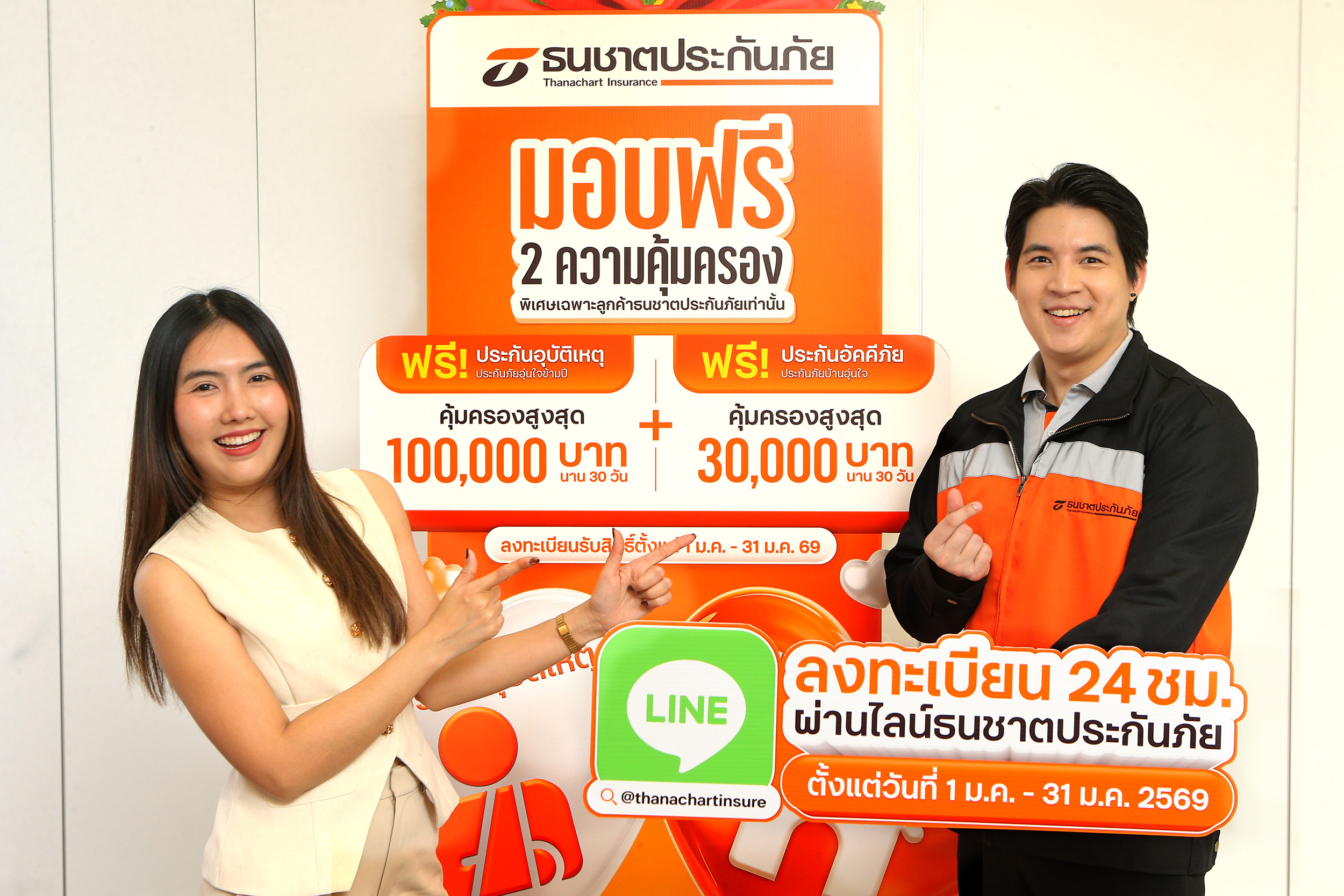 บริษัท ธนชาตประกันภัย จำกัด (มหาชน) มอบของขวัญปีใหม่ 2569 ส่งต่อความอุ่นใจให้กับลูกค้า รับฟรี! 2 ความคุ้มครอง ดูแลความเสี่ยงรอบตัวในชีวิตประจำวัน ได้แก่ ประกันอุบัติเหตุ “ประกันภัยอุ่นใจ” ที่ให้ความคุ้มครองชีวิตจากอุบัติเหตุ วงเงินคุ้มครองสูงสุด 100,000 บาท รองรับเหตุไม่คาดคิดที่อาจเกิดขึ้นในช่วงเดินทาง ท่องเที่ยว หรือใช้ชีวิตประจำวัน ควบคู่กับ ประกันอัคคีภัย “ประกันภัยบ้านอุ่นใจ” ที่ช่วยคุ้มครองความเสียหายจากอัคคีภัยสำหรับที่อยู่อาศัย วงเงินคุ้มครองสูงสุด 30,000 บาท เสริมความมั่นใจให้บ้านซึ่งเป็นพื้นที่สำคัญของทุกครอบครัว โดยทั้ง 2 ความคุ้มครองมอบให้ฟรี ไม่มีค่าใช้จ่าย พร้อมระยะเวลาคุ้มครอง นาน 30 วัน เพื่อให้ลูกค้าใช้ชีวิตได้อย่างสบายใจยิ่งขึ้น ช่วยลดความกังวลจากความเสี่ยงรอบด้าน