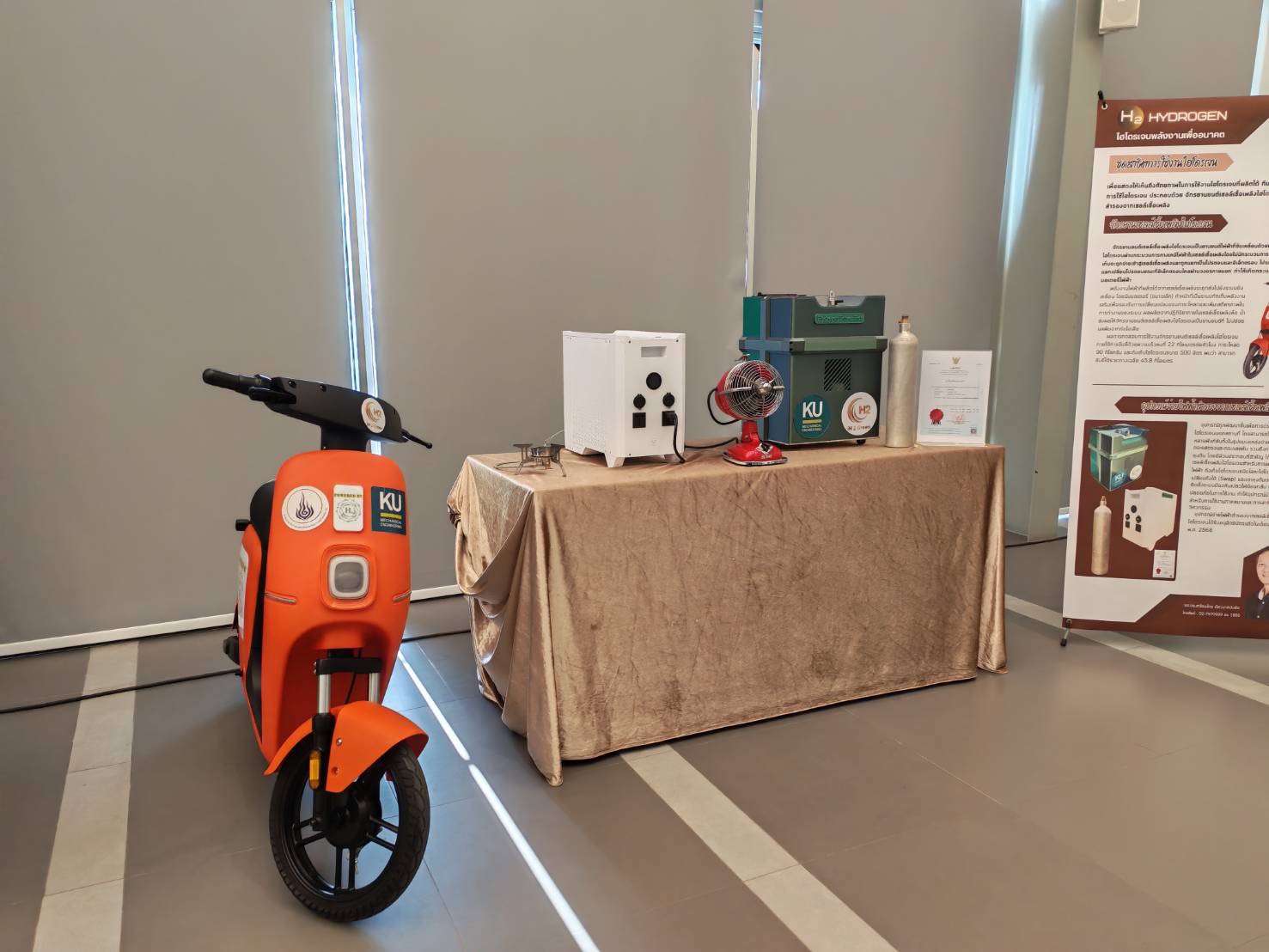 ส.กทอ.โชว์เคสผลงานวิจัยและพัฒนาเทคโนโลยีไฮโดรเจนโดยกองทุนเพื่อส่งเสริมการอนุรักษ์พลังงานจัดสรรทุนกว่า 9.4 ล้านบาท สนับสนุนให้โครงการวิจัยและพัฒนาระบบผลิตและกักเก็บไฮโดรเจนจากพลังงานทดแทนของมหาวิทยาลัยเกษตรศาสตร์ เพื่อส่งเสริมการพัฒนาเทคโนโลยีต้นแบบด้านพลังงานไฮโดรเจนที่เหมาะสมกับบริบทของประเทศไทย และต่อยอดสู่การใช้งานจริงในอนาคต