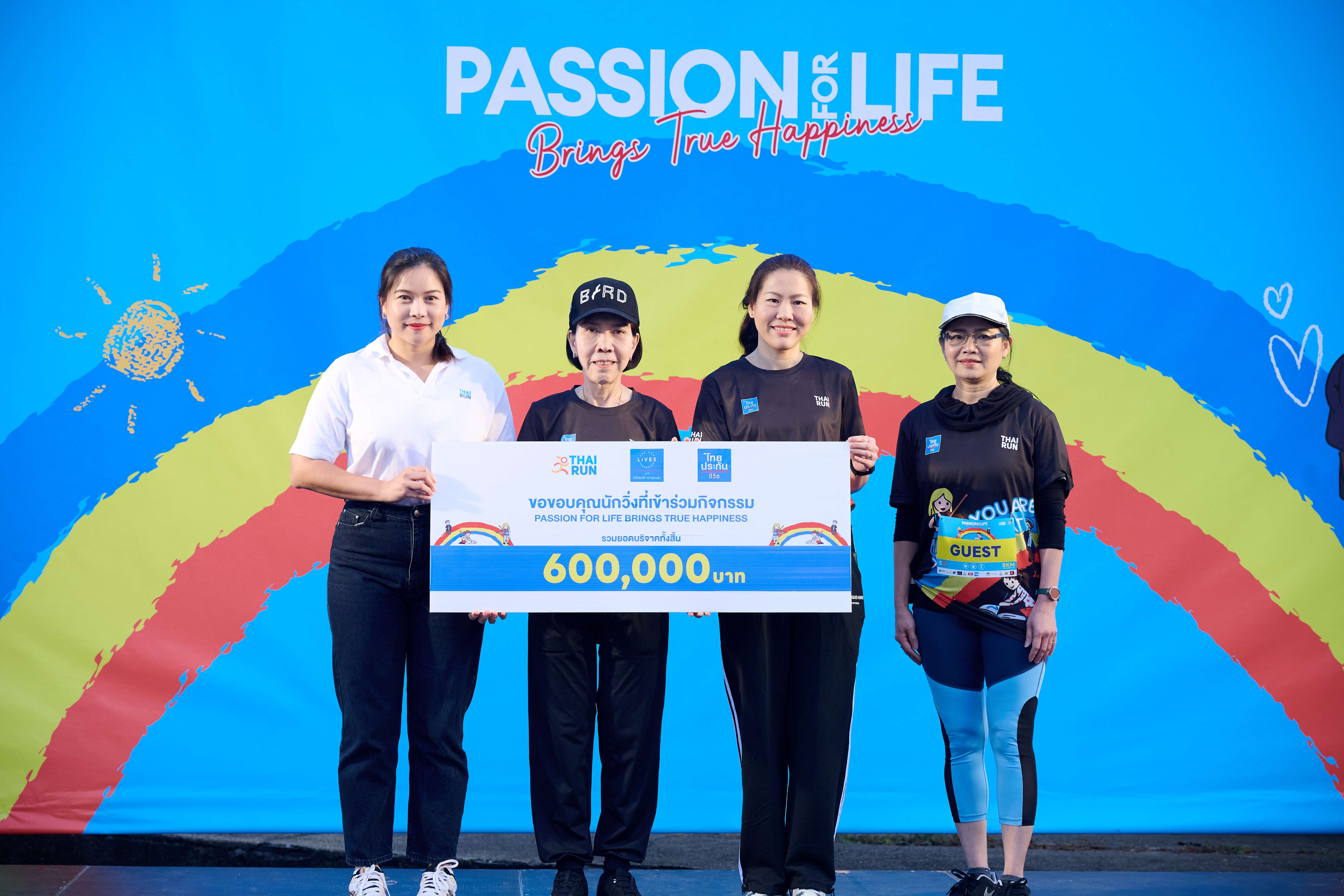 นางสาวฐิติมา เลี้ยงพาณิชย์ ผู้อำนวยการฝ่าย กลุ่มสื่อสารและความยั่งยืนองค์กร บริษัท ไทยประกันชีวิต จำกัด (มหาชน) และ นางสาวกณิกนันต์ เพียรลิขิต รองประธาน บริษัท ไทยดอทรัน จำกัด ร่วมมอบเงินรายได้จากการจัดกิจกรรมวิ่ง "PASSION FOR LIFE: Brings True Happiness" จำนวน 600,000 บาท แก่นางสาวภาสินี ปรีชาธนาพล กรรมการและเลขานุการ มูลนิธิหนึ่งคนให้ หลายคนรับ เพื่อสมทบทุนในโครงการ “หนึ่งคนให้ หลายคนรับ เพื่อชีวิตใหม่หัวใจเด็ก” เป็นค่าใช้จ่ายในการผ่าตัดผู้ป่วยเด็กโรคหัวใจพิการแต่กำเนิดที่ขาดแคลนทุนทรัพย์ อันเป็นการส่งต่อความรัก รอยยิ้ม และเติมเต็มโอกาสให้กับผู้ป่วยเด็กโรคหัวใจได้กลับมามีชีวิตใหม่อีกครั้ง