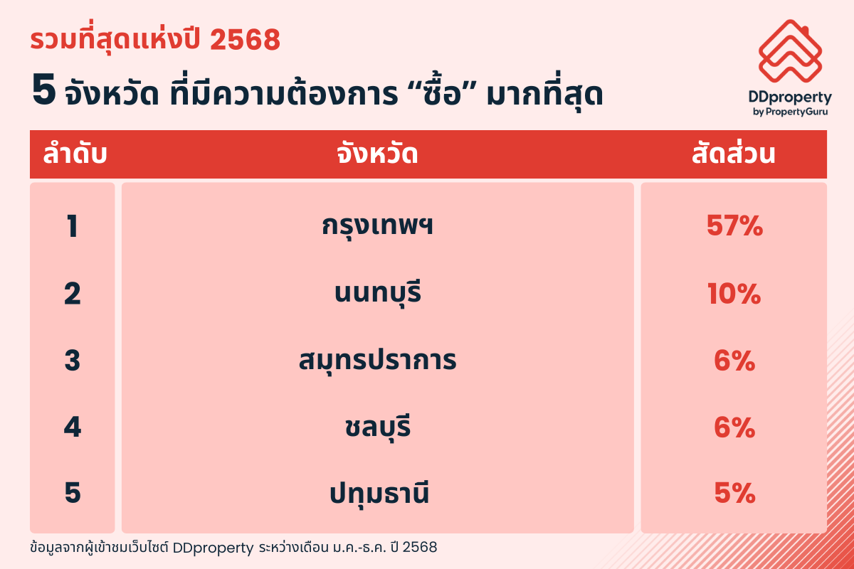 โดย 5 จังหวัดที่มีความต้องการซื้อมากที่สุดในรอบปี 2568 ได้แก่