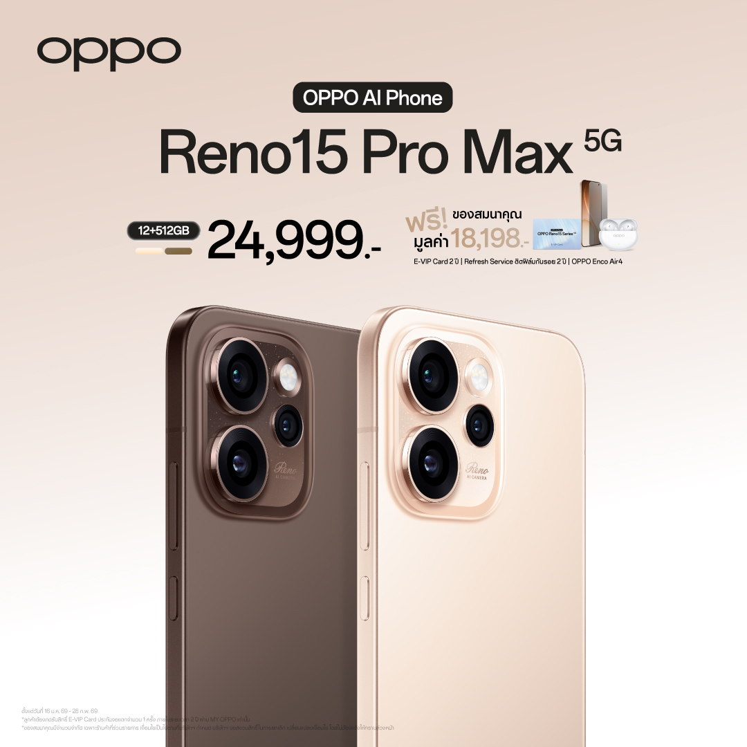 สำหรับรุ่น OPPO Reno15 Pro Max 5G และ OPPO Reno15 Pro 5G จะได้รับ OPPO Enco Air4 มูลค่า 1,999 บาท