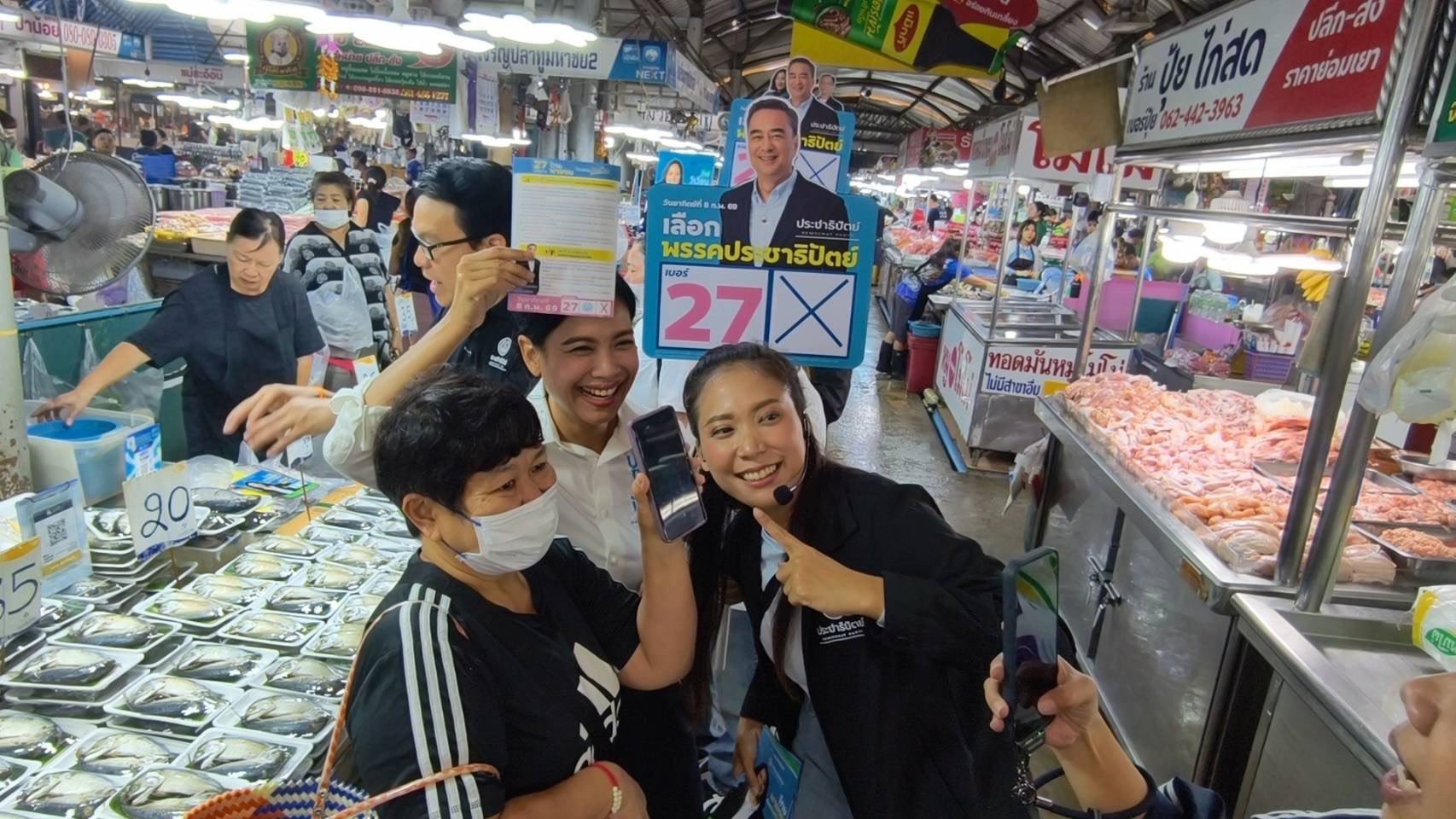 นายสกลธี ภัททิยกุล รองหัวหน้าพรรคประชาธิปัตย์ ดูแลพื้นที่กรุงเทพมหานคร พร้อมด้วย นางรัดเกล้า อินทวงศ์ สุวรรณคีรี รองหัวหน้าพรรค ร่วมลงพื้นที่กับ นางสาววิเวียน จุลมนต์ ผู้สมัครสมาชิกสภาผู้แทนราษฎร กรุงเทพมหานคร เขต 9 พรรคประชาธิปัตย์ เบอร์ 1 ครอบคลุมพื้นที่จตุจักร - บางเขน - หลักสี่ พบปะประชาชนและพ่อค้าแม่ค้าในตลาดยิ่งเจริญ เขตบางเขน ท่ามกลางสถานการณ์ฝุ่นละออง PM2.5 ที่อยู่ในระดับสีส้มถึงสีแดง ซึ่งส่งผลกระทบต่อสุขภาพของประชาชนอย่างน่ากังวล