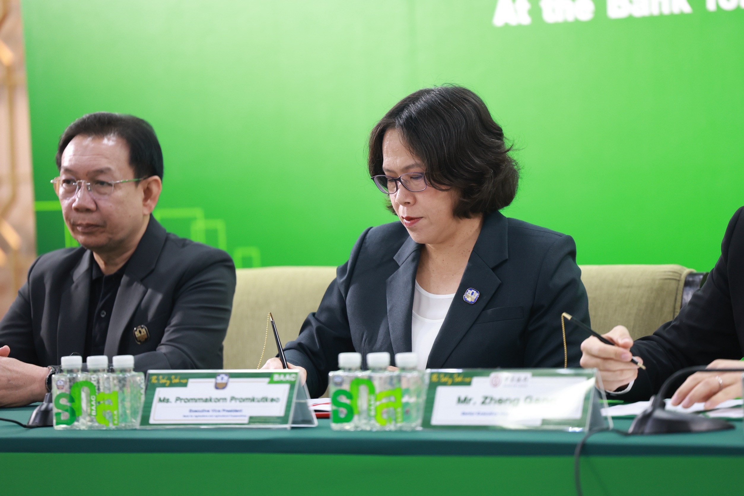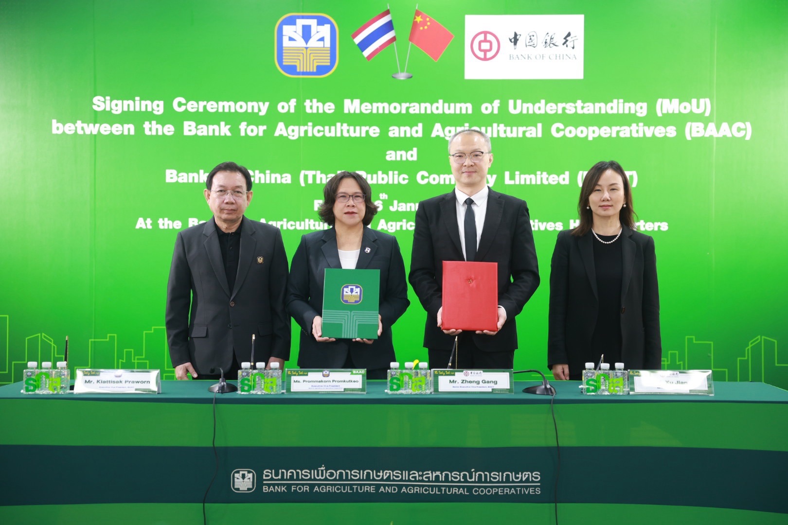 นางสาวพรหมกร พรหมขัติแก้ว ผู้ช่วยผู้จัดการธนาคารเพื่อการเกษตรและสหกรณ์การเกษตร (ธ.ก.ส.) พร้อมด้วย Mr. Zheng Gang, Senior, Executive Vice president, BOCT ร่วมพิธีลงนามบันทึกความเข้าใจระหว่าง ธ.ก.ส. และ ธนาคารแห่งประเทศจีน (ไทย) จำกัด (มหาชน) หรือ Bank of China (Thai) Public Company Limited (BOCT) เพื่อขับเคลื่อนความร่วมมือที่มุ่งเน้นการพัฒนาบริการทางการเงิน การสนับสนุนสินเชื่อเพื่อธุรกิจ การอำนวยความสะดวกด้านธุรกรรมข้ามพรมแดน รวมถึงการแลกเปลี่ยนองค์ความรู้และเครือข่ายทางธุรกิจ เพื่อรองรับการขยายตัวของการลงทุนและการค้าระหว่างไทยและจีนในอนาคต สำหรับความร่วมมือในครั้งนี้ถือเป็นอีกหนึ่งก้าวสำคัญในการเสริมความแข็งแกร่งให้กับระบบนิเวศทางธุรกิจ ช่วยเพิ่มโอกาสในการเข้าถึงแหล่งเงินทุน และสนับสนุนผู้ประกอบการให้สามารถแข่งขันในตลาดระดับภูมิภาคและระดับโลกได้อย่างมีประสิทธิภาพ โดยมีนายเกียรติศักดิ์ พระวร ผู้ช่วยผู้จัดการ ธ.ก.ส. ร่วมเป็นสักขีพยานลงนามบันทึกครั้งนี้ ณ โถงประชุมชั้น 2 อาคารทาวเวอร์ ธ.ก.ส. สำนักงานใหญ่ กรุงเทพฯ