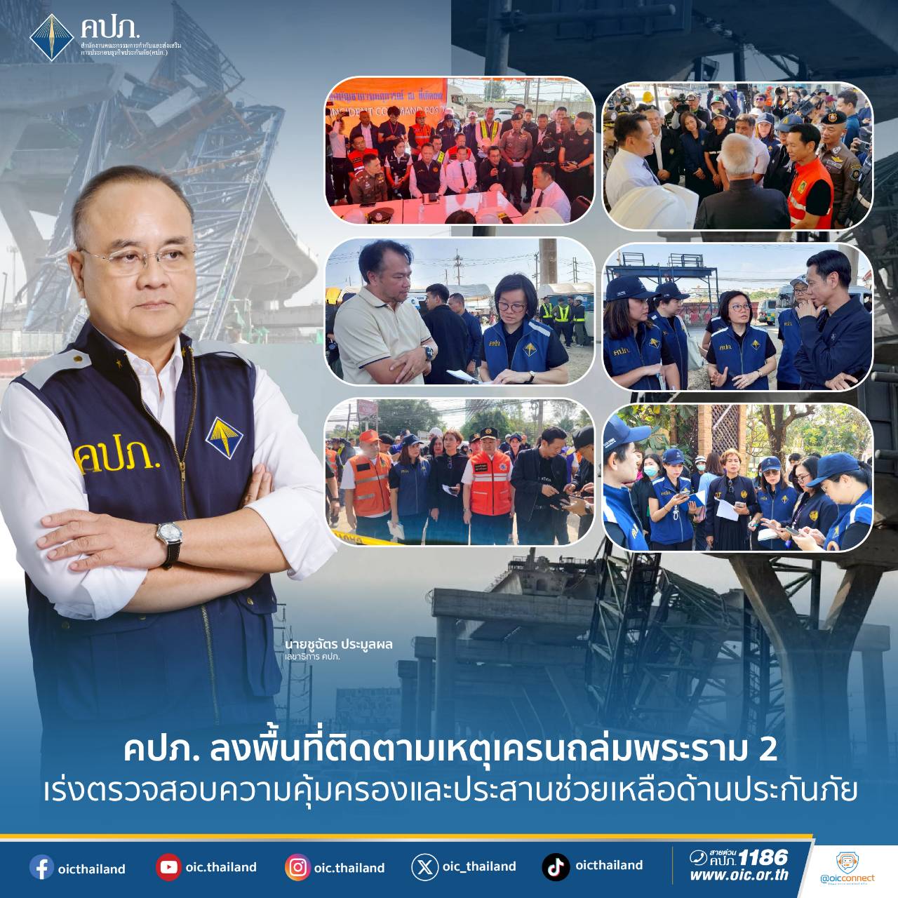 ในการนี้ นายกรัฐมนตรีได้มีข้อสั่งการให้ทุกหน่วยงานบูรณาการการทำงานร่วมกัน เพื่อเร่งคลี่คลายสถานการณ์และเปิดการจราจรให้ประชาชนสามารถสัญจรได้ตามปกติโดยเร็ว โดยเน้นย้ำให้ความสำคัญกับความปลอดภัยของประชาชนและเจ้าหน้าที่เป็นอันดับแรกพร้อมกำชับมาตรการความปลอดภัยในพื้นที่ก่อสร้างอย่างเข้มงวดเพื่อป้องกันไม่ให้เกิดเหตุซ้ำ และให้เร่งรัดการเยียวยาช่วยเหลือผู้ได้รับผลกระทบอย่างทั่วถึงในทุกมิติ รวมถึงการดูแลสิทธิประโยชน์ด้านการประกันภัยให้เป็นไปอย่างรวดเร็ว โปร่งใส และเป็นธรรม ทั้งนี้ สำนักงาน คปภ. พร้อมสนองข้อสั่งการดังกล่าว โดยจะบูรณาการร่วมกับหน่วยงานที่เกี่ยวข้องและบริษัทประกันภัย เพื่อเร่งรัดการตรวจสอบความคุ้มครองและการจ่ายค่าสินไหมทดแทนแก่ผู้ได้รับผลกระทบอย่างเต็มที่