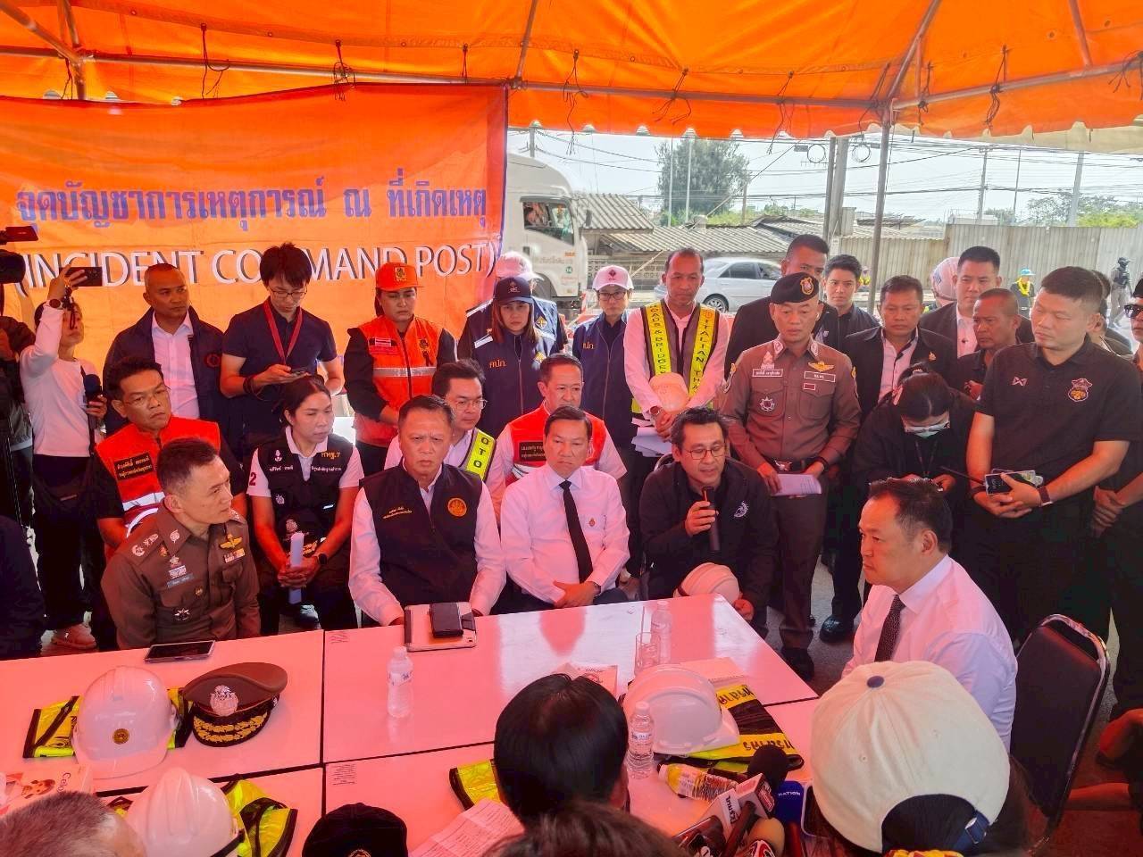 ต่อมาในวันที่ 16 มกราคม 2569 เวลา 14.00 น. นายอนุทิน ชาญวีรกูล นายกรัฐมนตรีและรัฐมนตรีว่าการกระทรวงมหาดไทย พร้อมด้วยนายอรรษิษฐ์ สัมพันธรัตน์ ปลัดกระทรวงมหาดไทย และผู้บริหารระดับสูงจากกรมป้องกันและบรรเทาสาธารณภัย กรมโยธาธิการและผังเมือง และกรมทางหลวง ได้ลงพื้นที่ตรวจติดตามสถานการณ์และการปฏิบัติงานในจุดเกิดเหตุ โดยมีนายอำนาจ เจริญศรี ผู้ว่าราชการจังหวัดสมุทรสาคร ในฐานะผู้บัญชาการเหตุการณ์ พร้อมด้วยนางจันทิมา มีโส ผู้อำนวยการภาค สำนักงาน คปภ. ภาค 7 (นครปฐม) และผู้อำนวยการสำนักงาน คปภ. จังหวัดสมุทรสาคร ร่วมลงพื้นที่และรายงานสถานการณ์การช่วยเหลือเยียวยาผู้ได้รับผลกระทบ