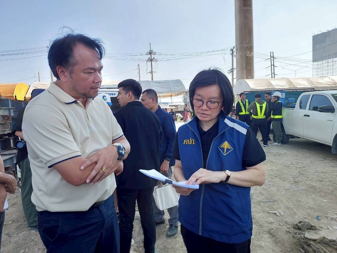 นายชูฉัตร ประมูลผล เลขาธิการคณะกรรมการกำกับและส่งเสริมการประกอบธุรกิจประกันภัย (เลขาธิการ คปภ.) ได้สั่งการให้นางสาววิไลรัตน์ แสงแก้ว ผู้ช่วยเลขาธิการ สายส่งเสริมและประกันภัยภูมิภาค พร้อมด้วยนางอรุโณทัย ทองพรหม ผู้อำนวยการสำนักงาน คปภ. จังหวัดสมุทรสาคร ลงพื้นที่ตรวจสอบจุดเกิดเหตุตั้งแต่วันเกิดเหตุ เพื่อติดตามสถานการณ์อย่างใกล้ชิด และเร่งรวบรวมข้อมูลความเสียหายผ่านแพลตฟอร์มรายงานอุบัติภัยกลุ่มด้วยระบบอิเล็กทรอนิกส์ โดยจากการตรวจสอบข้อมูลประกันภัยเบื้องต้น พบว่ารถยนต์หมายเลขทะเบียน 2 ฒว 3739 กรุงเทพมหานคร มีการทำประกันภัยรถภาคบังคับ (พ.ร.บ.) กับบริษัท ฟอลคอนประกันภัย จำกัด (มหาชน) และในส่วนไซต์งานก่อสร้างอยู่ในความรับผิดชอบของบริษัท อิตาเลียนไทย ดีเวล๊อปเมนต์ จำกัด (มหาชน) ซึ่งขณะนี้อยู่ระหว่างการตรวจสอบรายละเอียดการทำประกันภัยที่เกี่ยวข้องเพิ่มเติมอย่างเร่งด่วน ทั้งนี้ สำนักงาน คปภ. จังหวัดสมุทรสาคร ได้ประสานบริษัทประกันภัยที่เกี่ยวข้องและกำชับให้เร่งรัดการพิจารณาจ่ายค่าสินไหมทดแทนแก่ทายาทผู้เสียชีวิตและผู้ได้รับบาดเจ็บโดยเร็ว